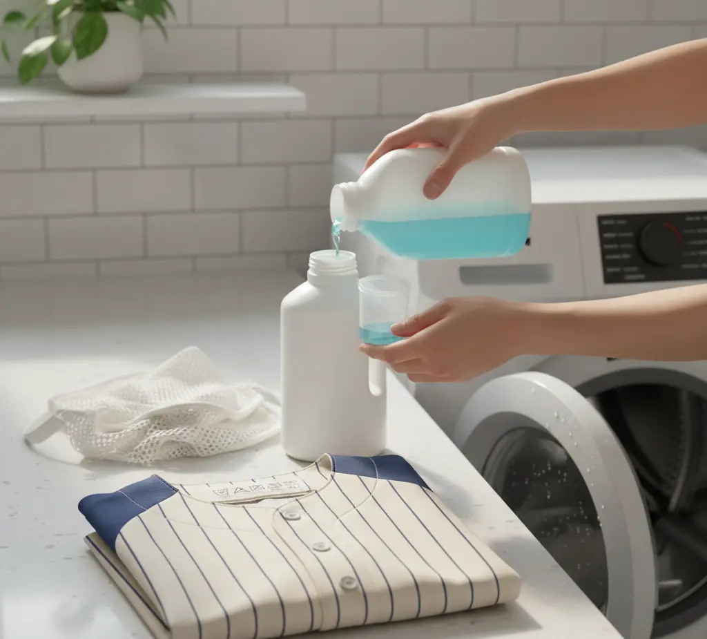 - Sweat/odor areas (underarms, collar): soak briefly in cold water; consider a small amount of white vinegar in the rinse.