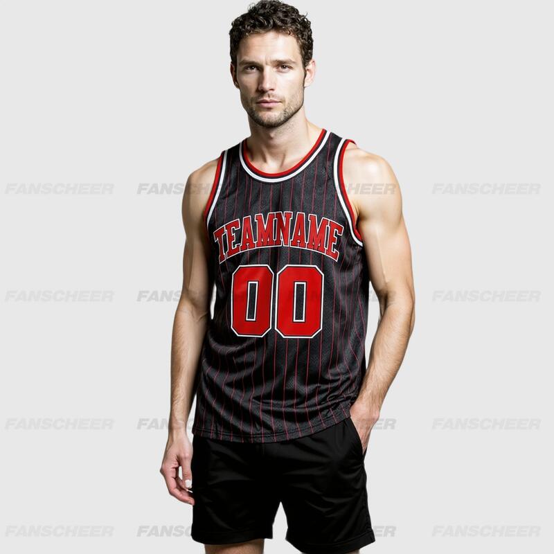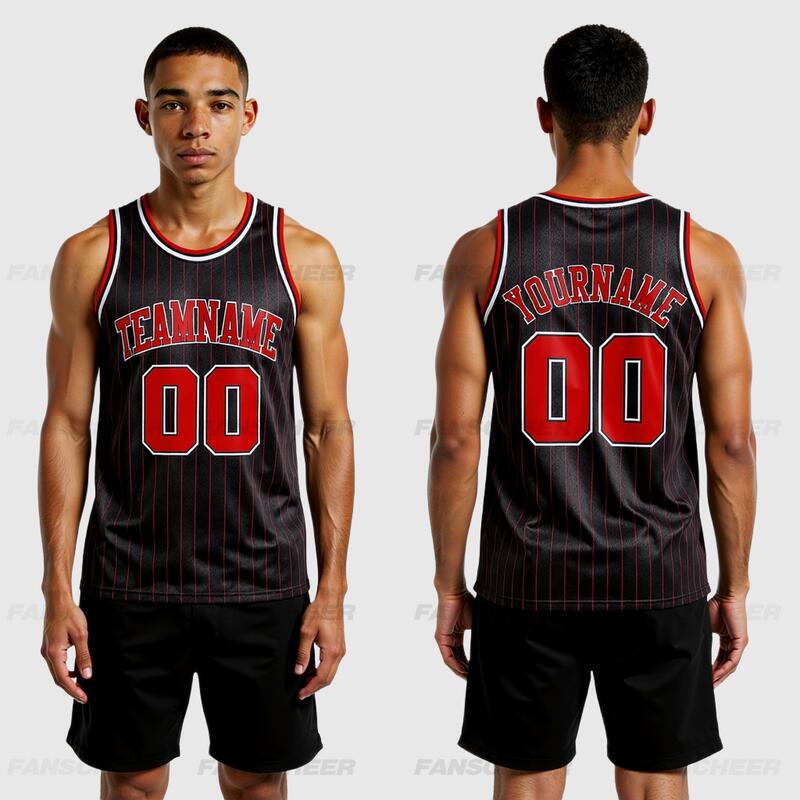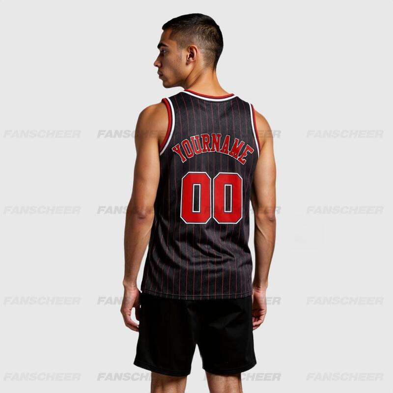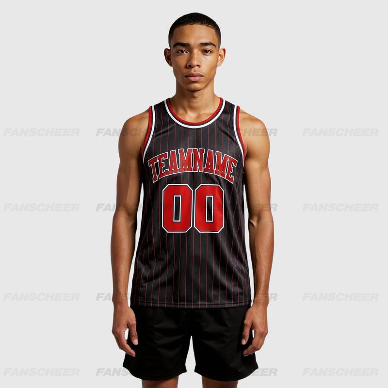 Authentic Pinstripe Black Basketball Jersey - Custom Stripe Color, Moisture-Wicking, Stylish Design