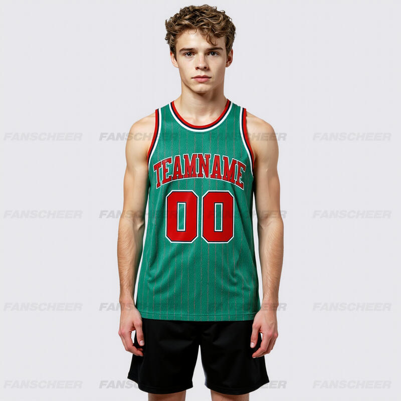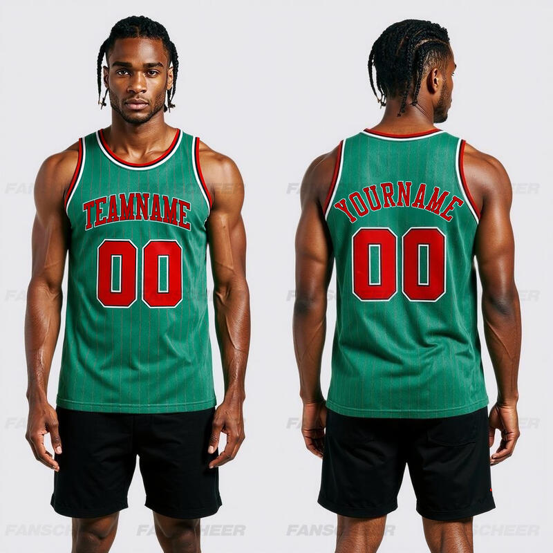 Authentic Pinstripe Kelly Green Basketball Jersey - Custom Stripe Detail, Breathable Fabric, Team Branding