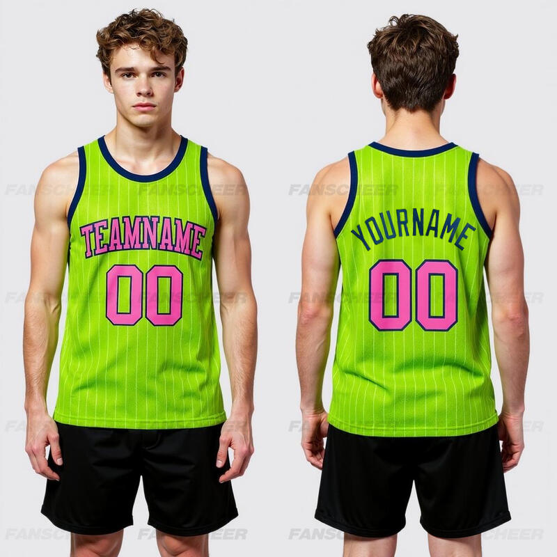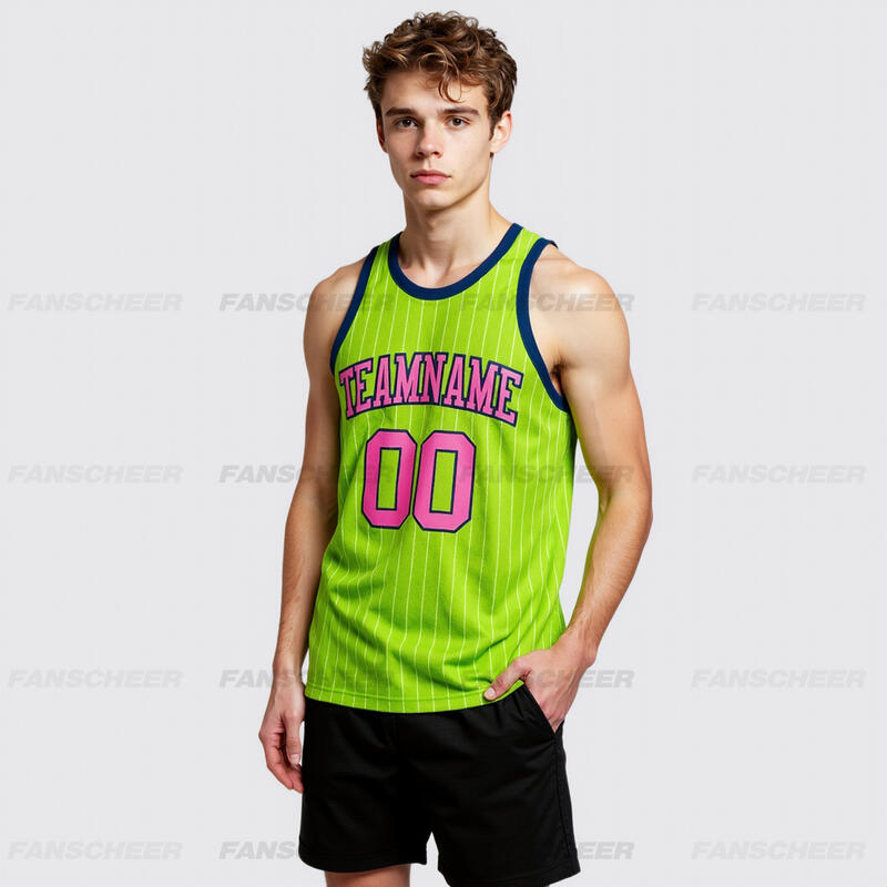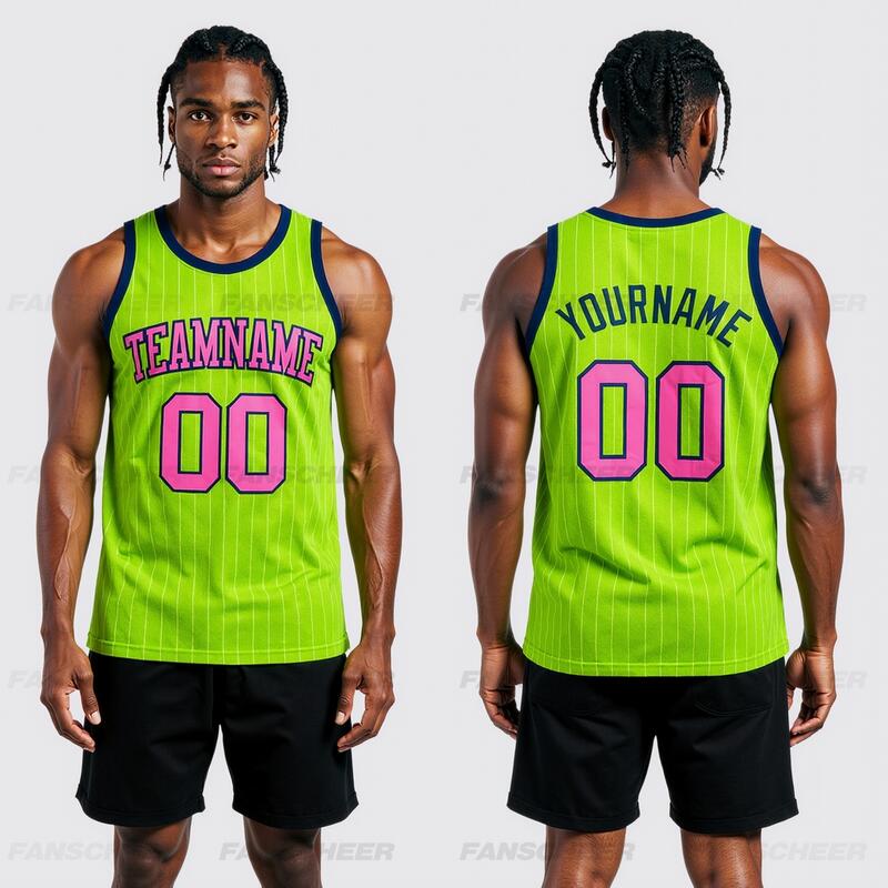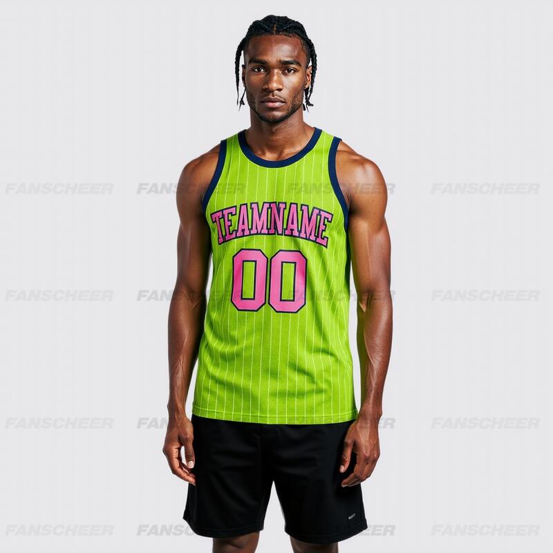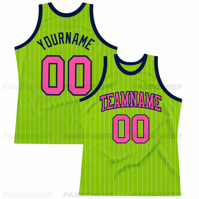 Authentic Pinstripe Neon Green Basketball Jersey - Custom Stripe Detail, Breathable Fabric, Team Branding
