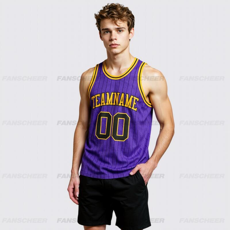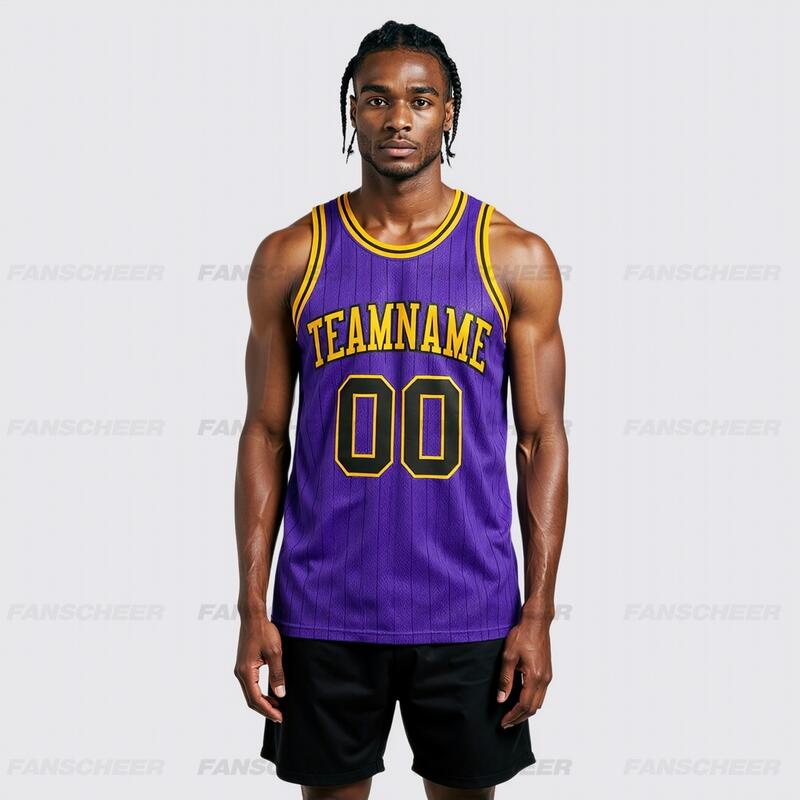 Authentic Pinstripe Purple Basketball Jersey - Custom Stripe Detail, Breathable Fabric, Team Branding