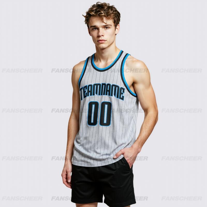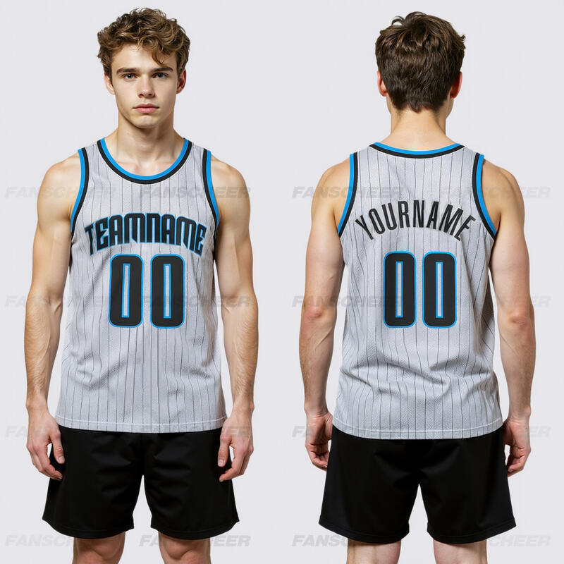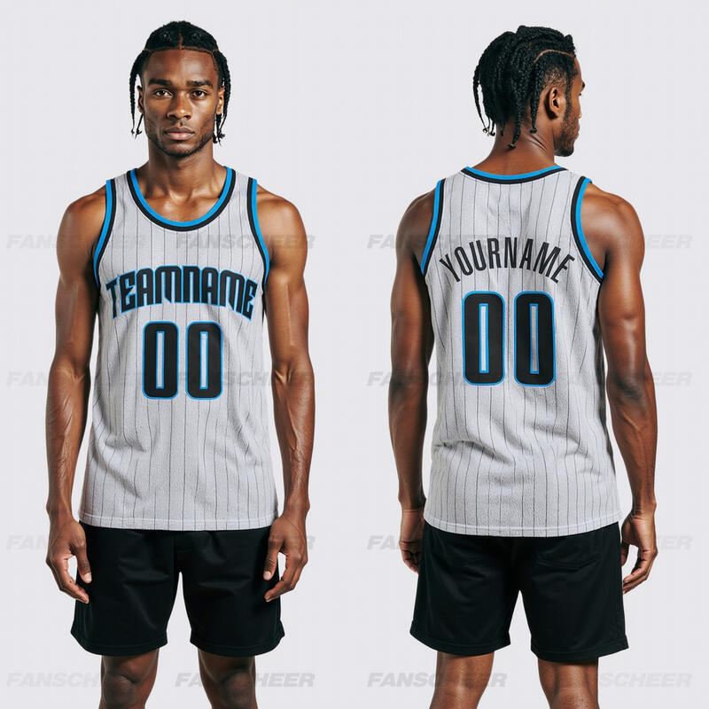 Authentic Pinstripe Steel Gray Basketball Jersey - Custom Stripes, Breathable Material, Durable Stitching