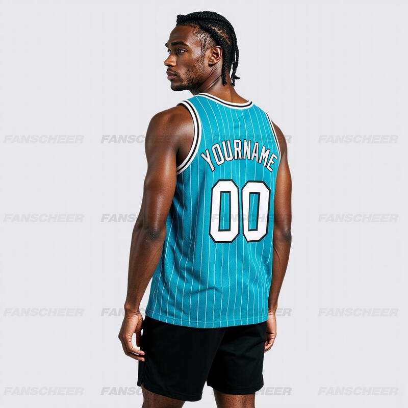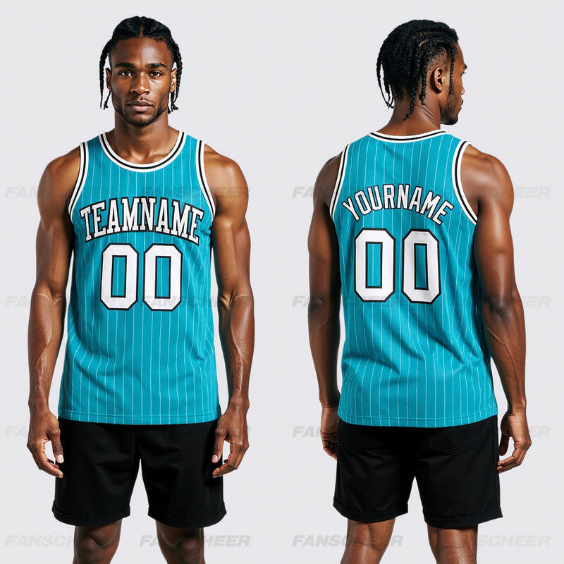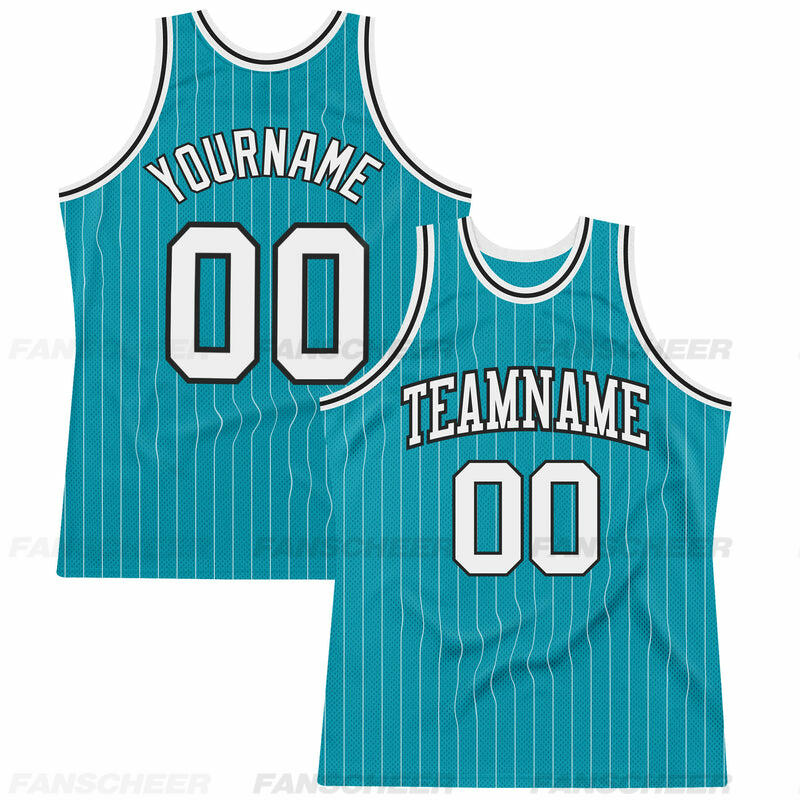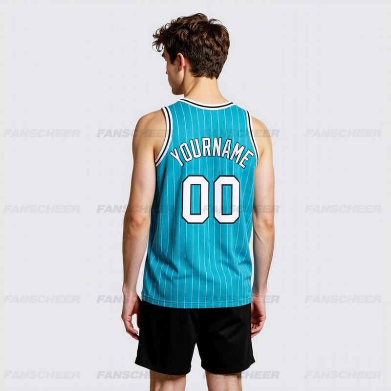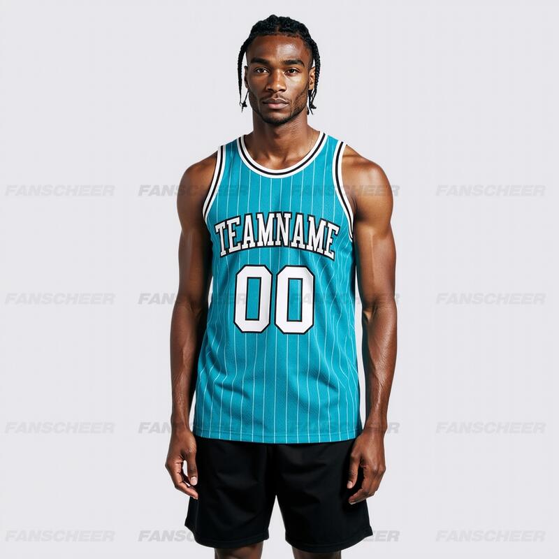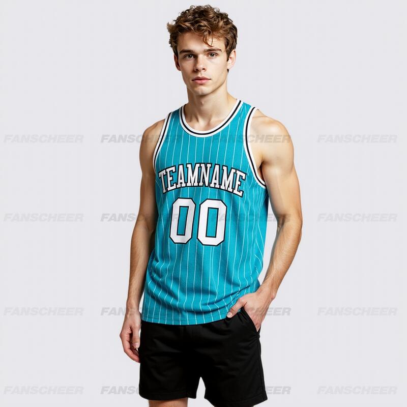 Authentic Pinstripe Teal Basketball Jersey - Custom Stripe Detail, Breathable Fabric, Team Branding