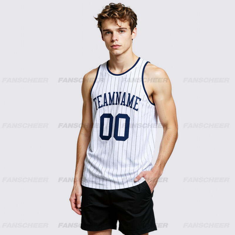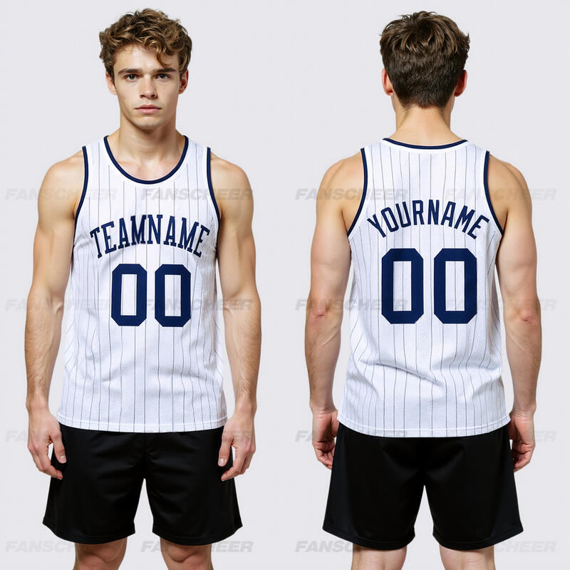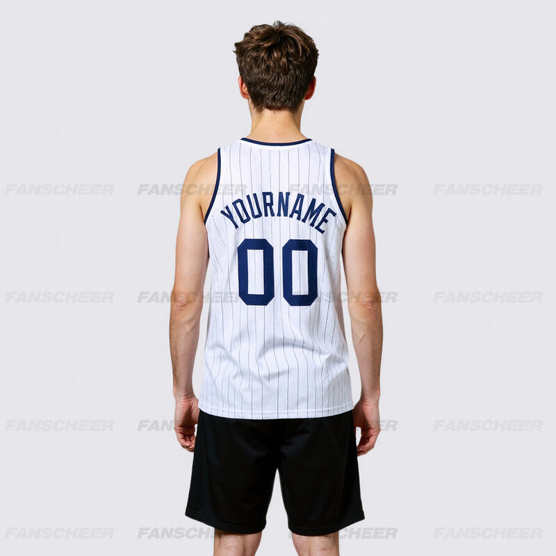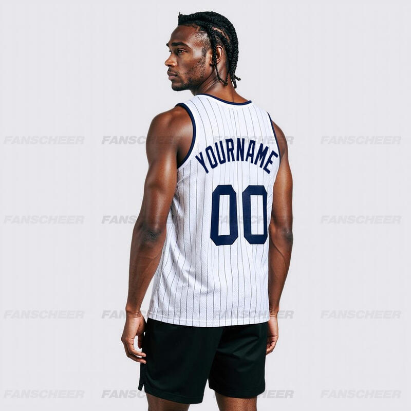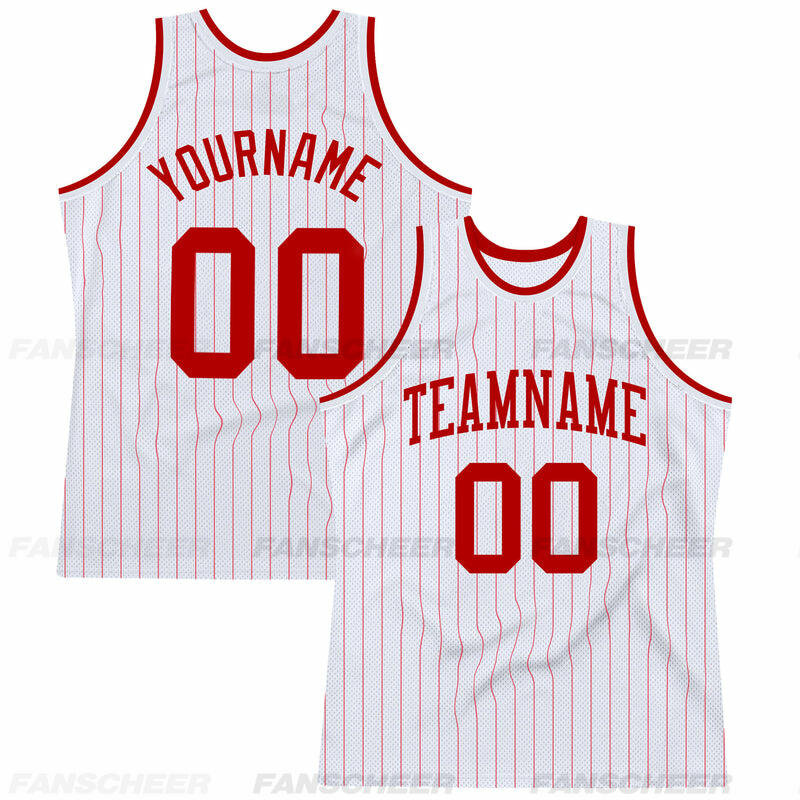 Authentic White Pinstripe Basketball Jersey - Custom Stripe Pattern, Breathable Panels, Team Name
