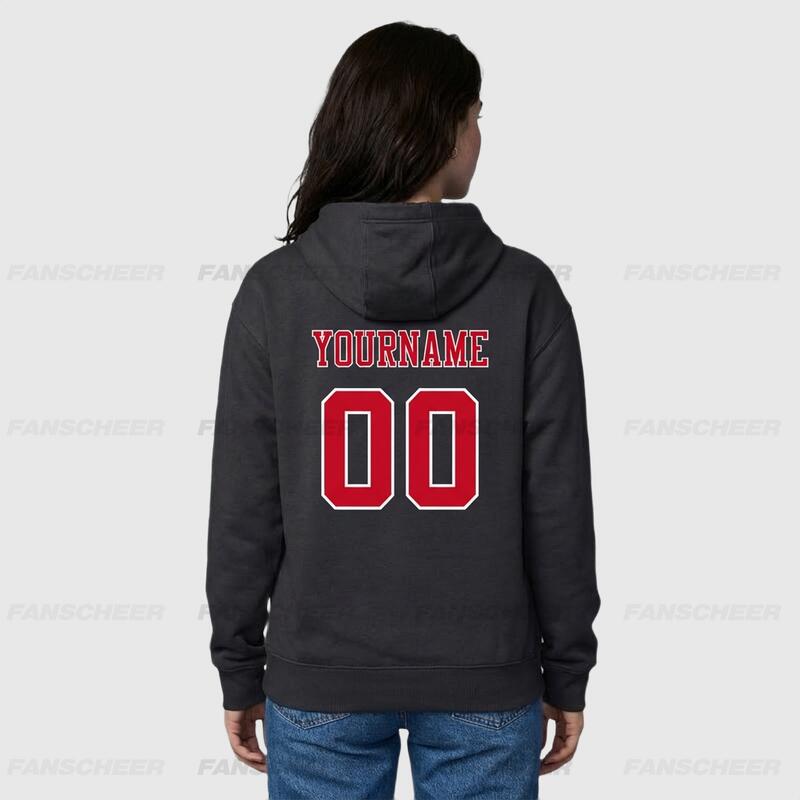 The Fanscheer custom pullover sweatshirt hoodie blends comfort with style, a masterpiece crafted with meticulous attention to detail. Slip into this custom hoodie featuring embroidered numbers and get ready to unwind while showcasing your unique flair.