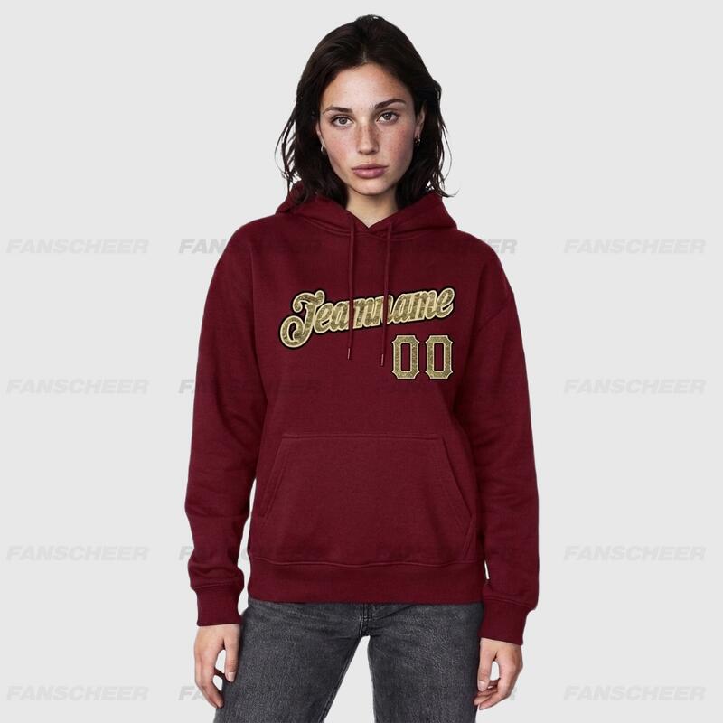 The Fanscheer custom pullover sweatshirt hoodie blends comfort with style, a masterpiece crafted with meticulous attention to detail. Slip into this custom hoodie featuring embroidered numbers and get ready to unwind while showcasing your unique flair.
