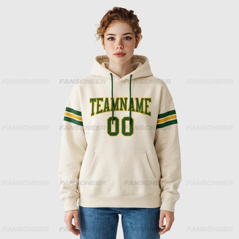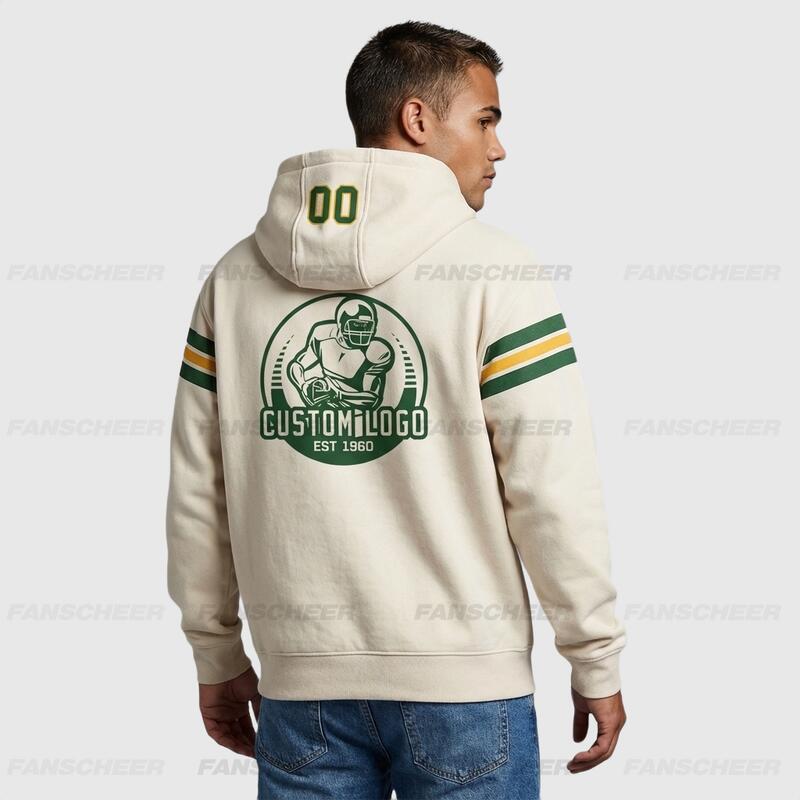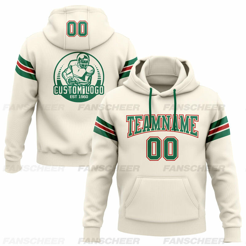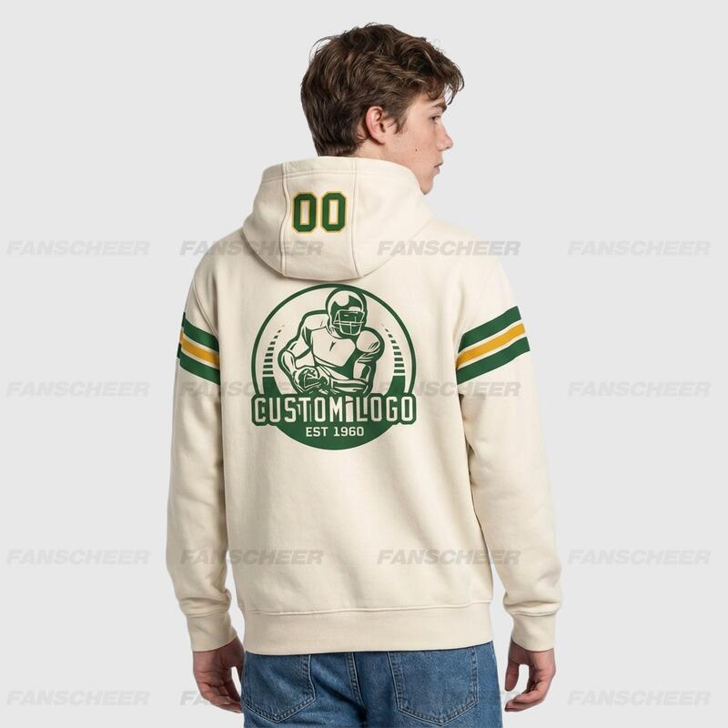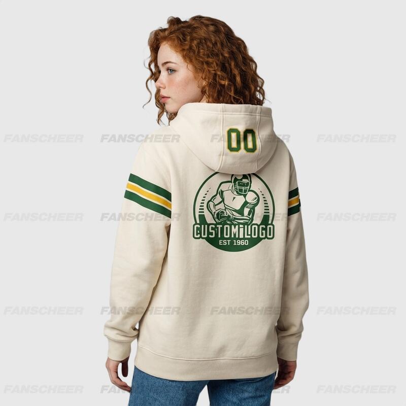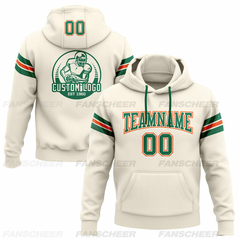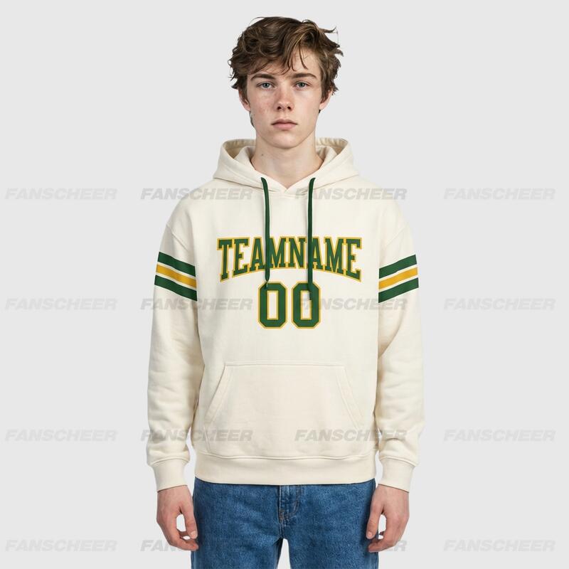 Comfortable Custom Stitched Cream Football Pullover Hoodie Breathable Material Custom Team Logo & Chosen Number