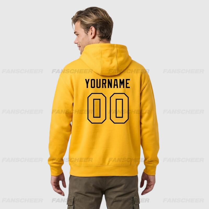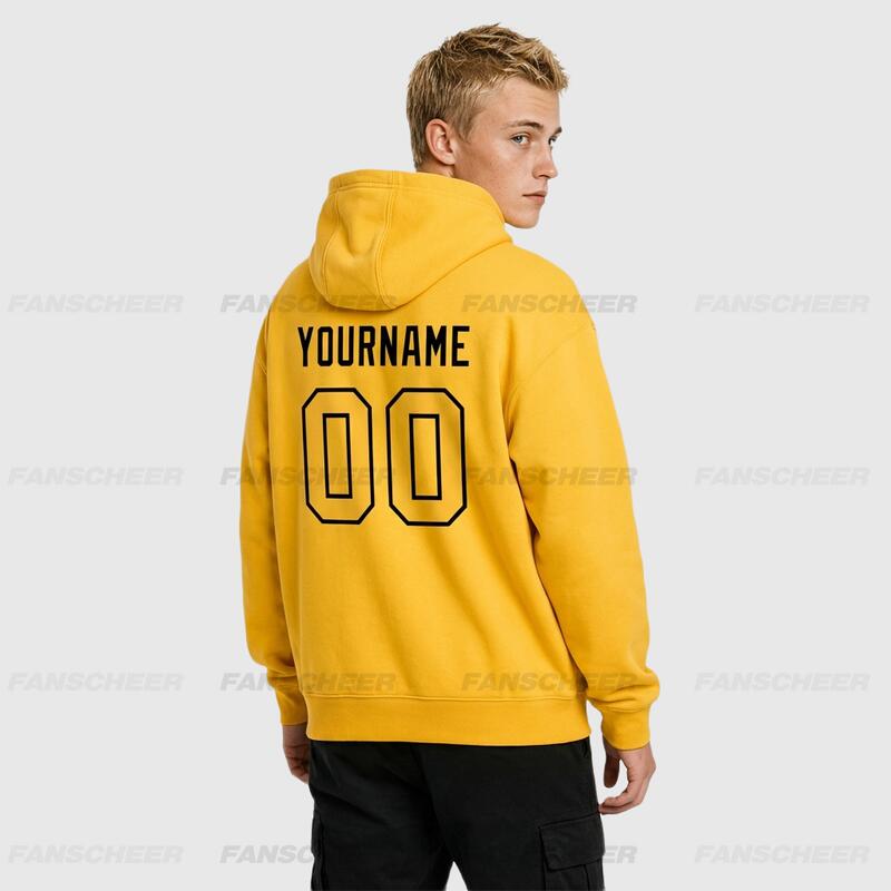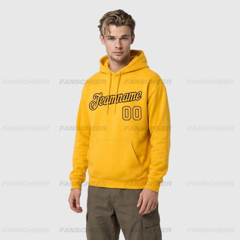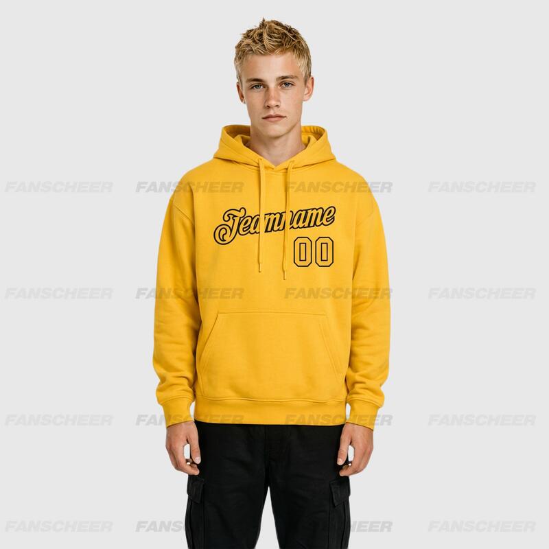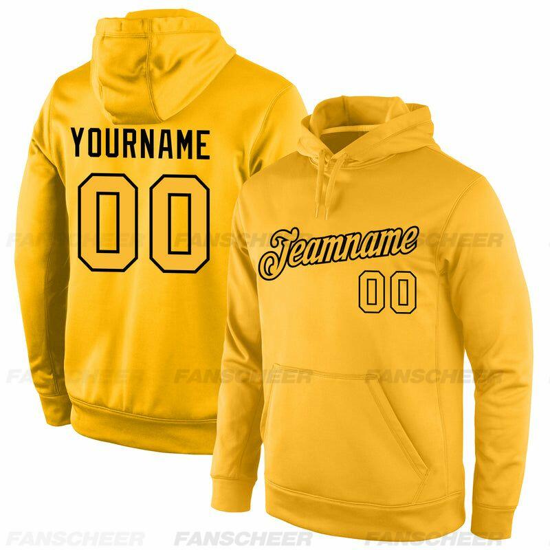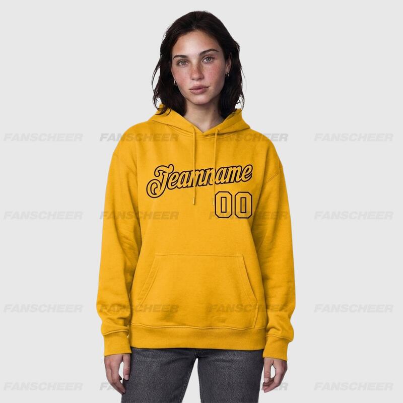 Comfortable Custom Stitched Gold Sports Pullover Hoodie Cozy Material Suitable for Sports Personalized Team Name & Number