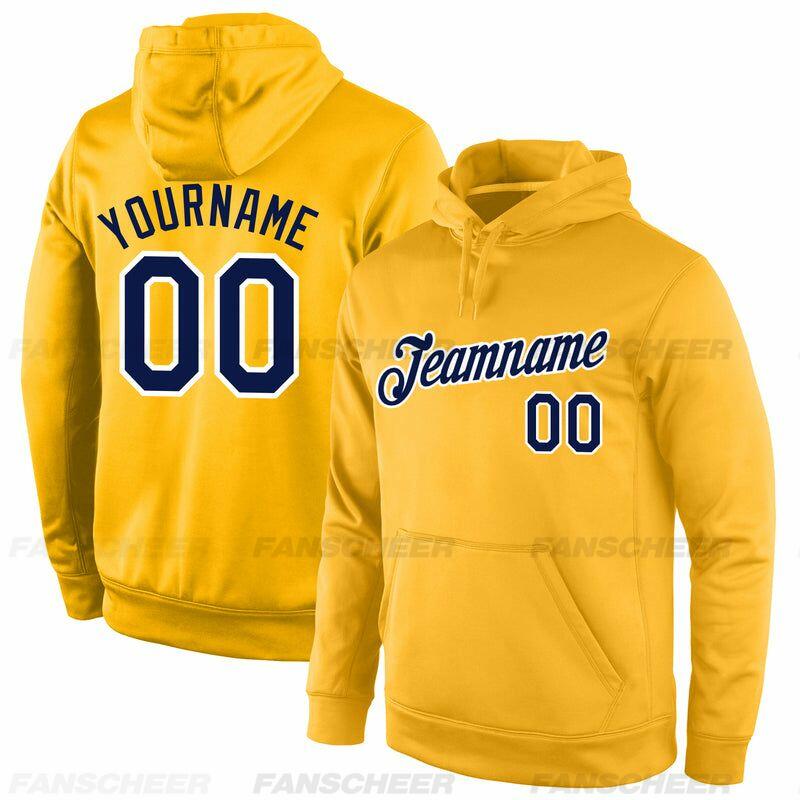 Comfortable Custom Stitched Gold Sports Pullover Sweatshirt Hoodie Soft Material Personalized Team Name & Number