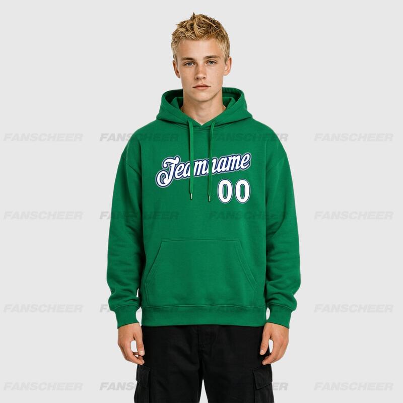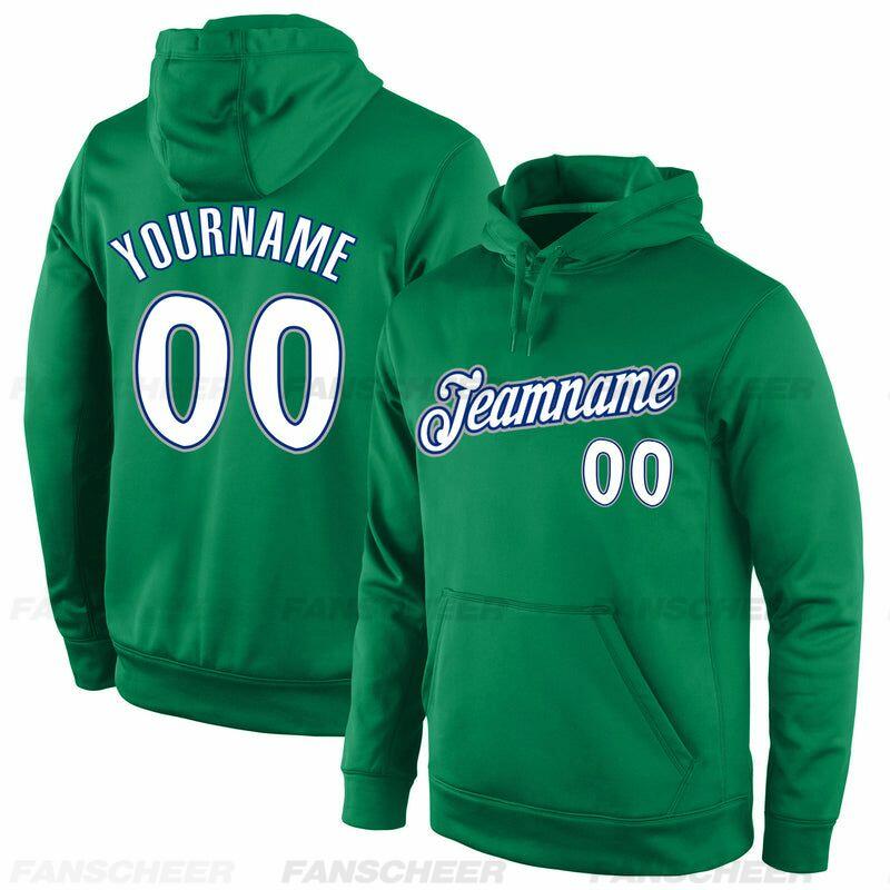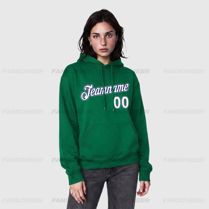 Comfortable Custom Stitched Kelly Green Sports Pullover Hoodie Breathable Fabric Custom Team Name & Chosen Number