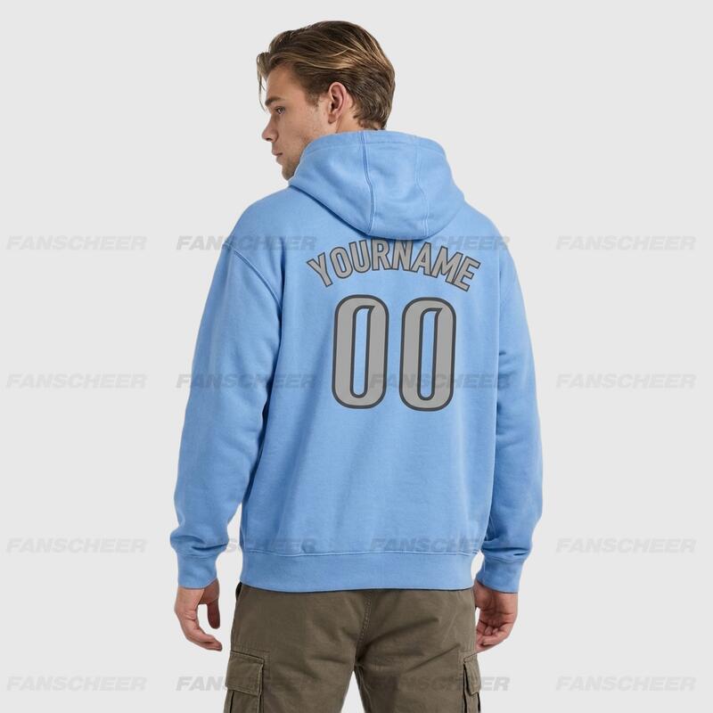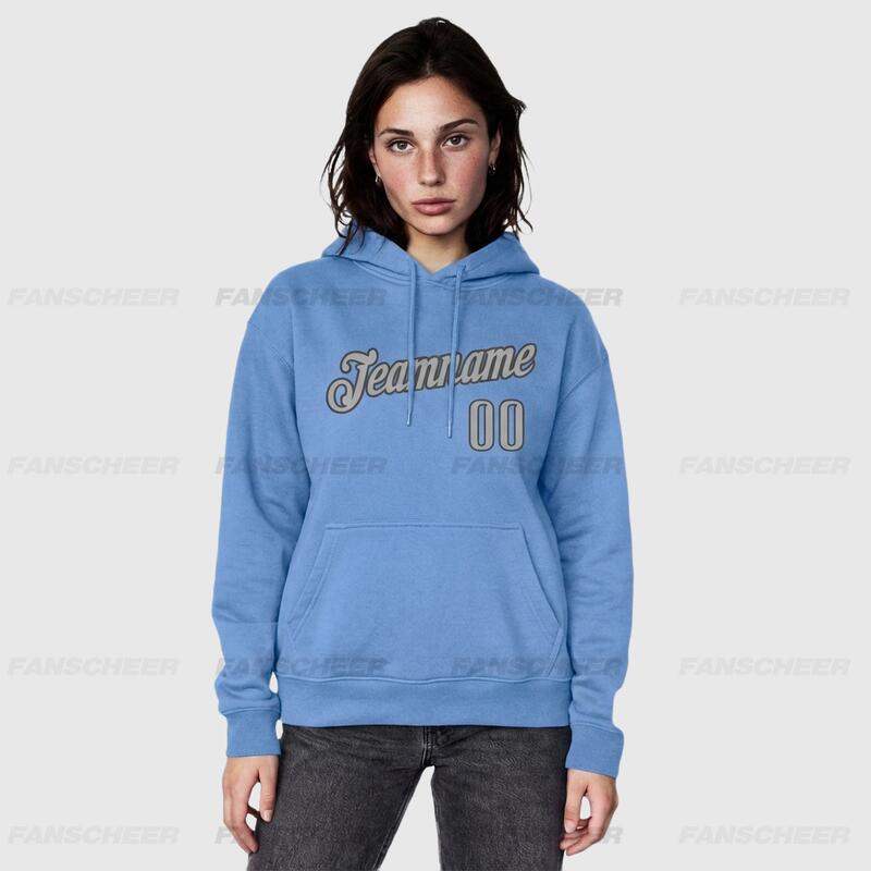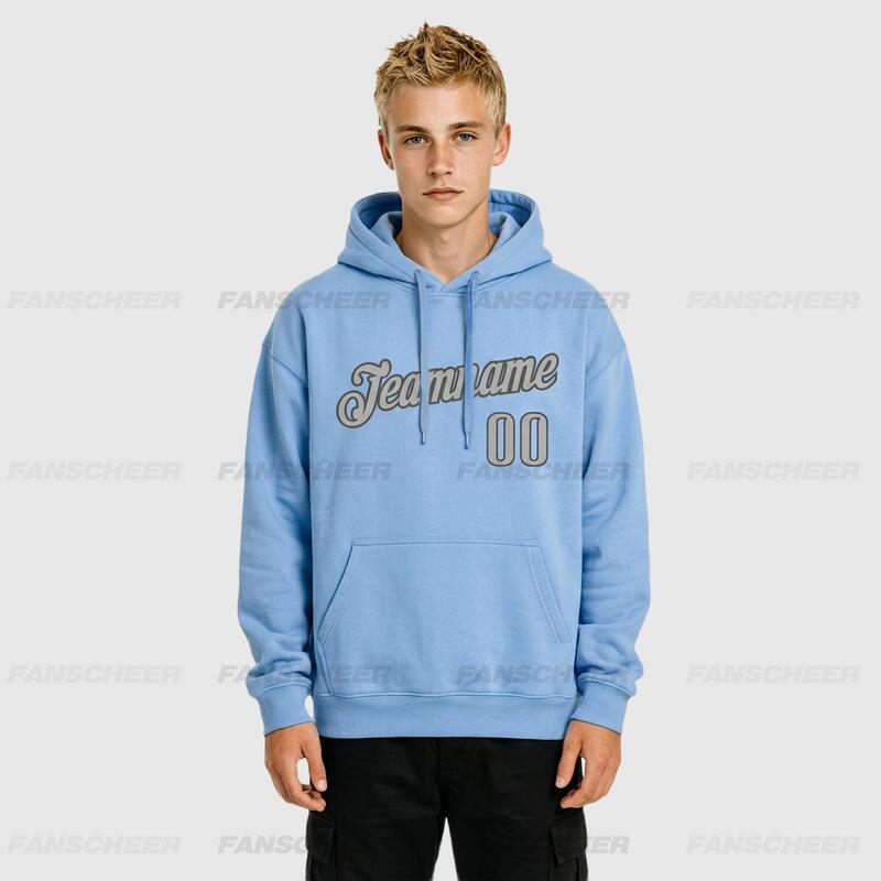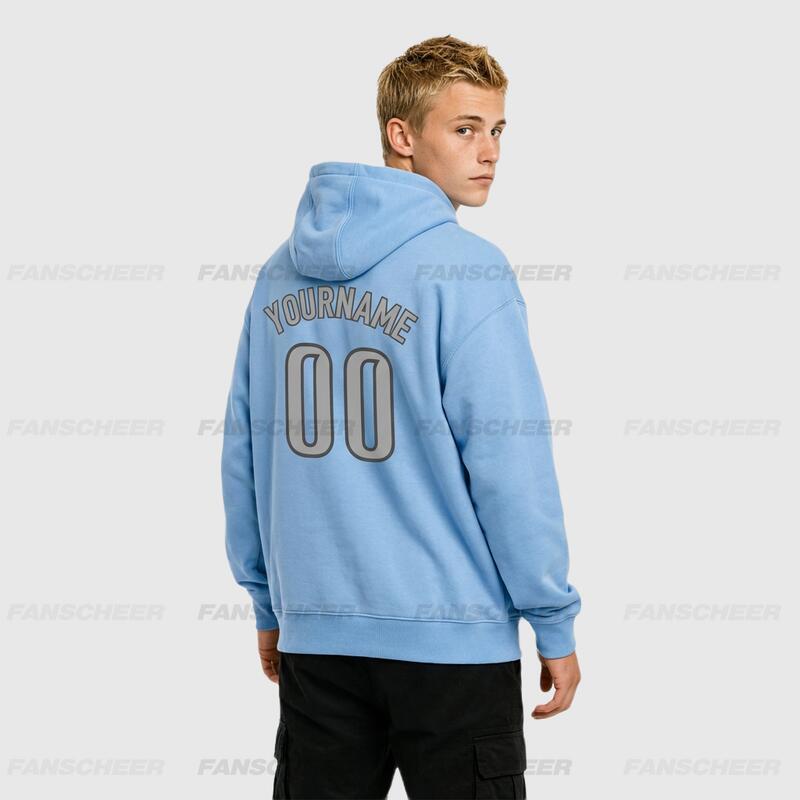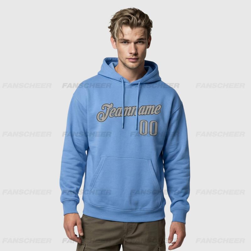 Comfortable Custom Stitched Light Blue Sports Pullover Hoodie Breathable Fabric Custom Team Name & Chosen Number