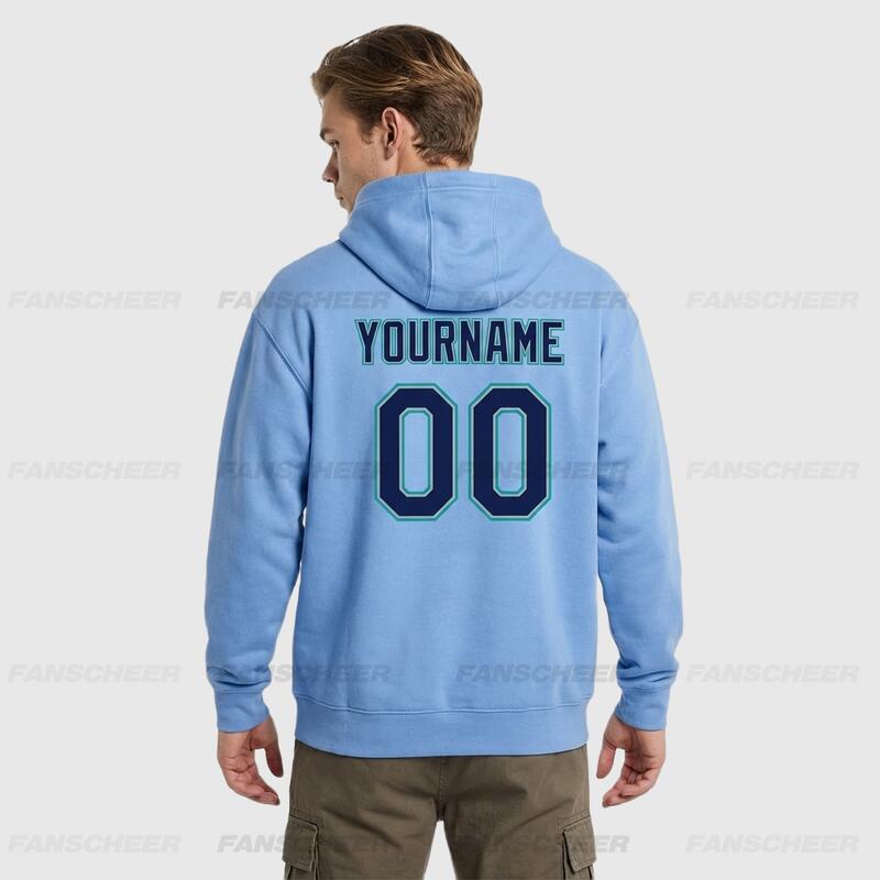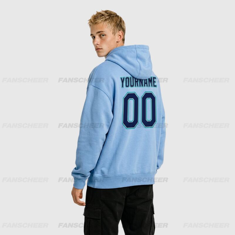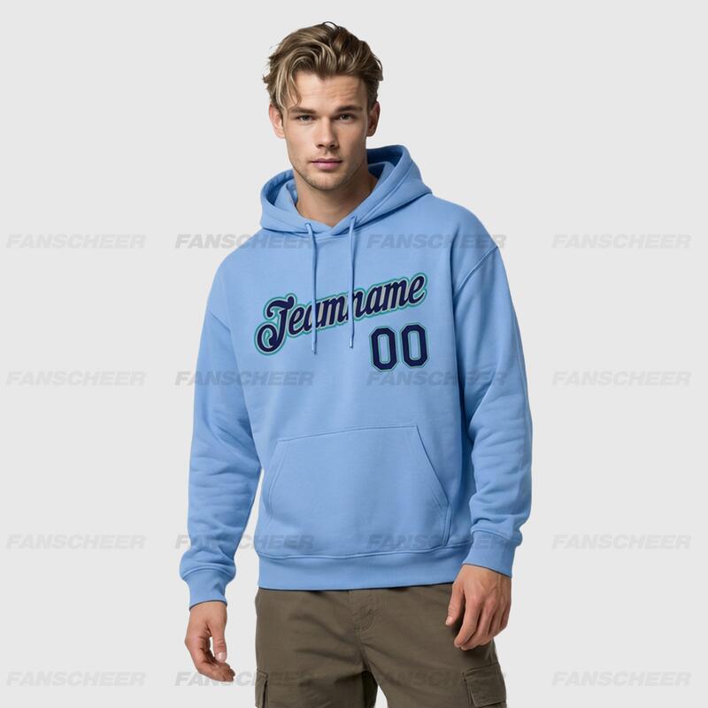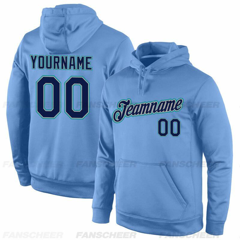 Comfortable Custom Stitched Light Blue Sports Pullover Sweatshirt Hoodie Soft Material Personalized Team Name & Number