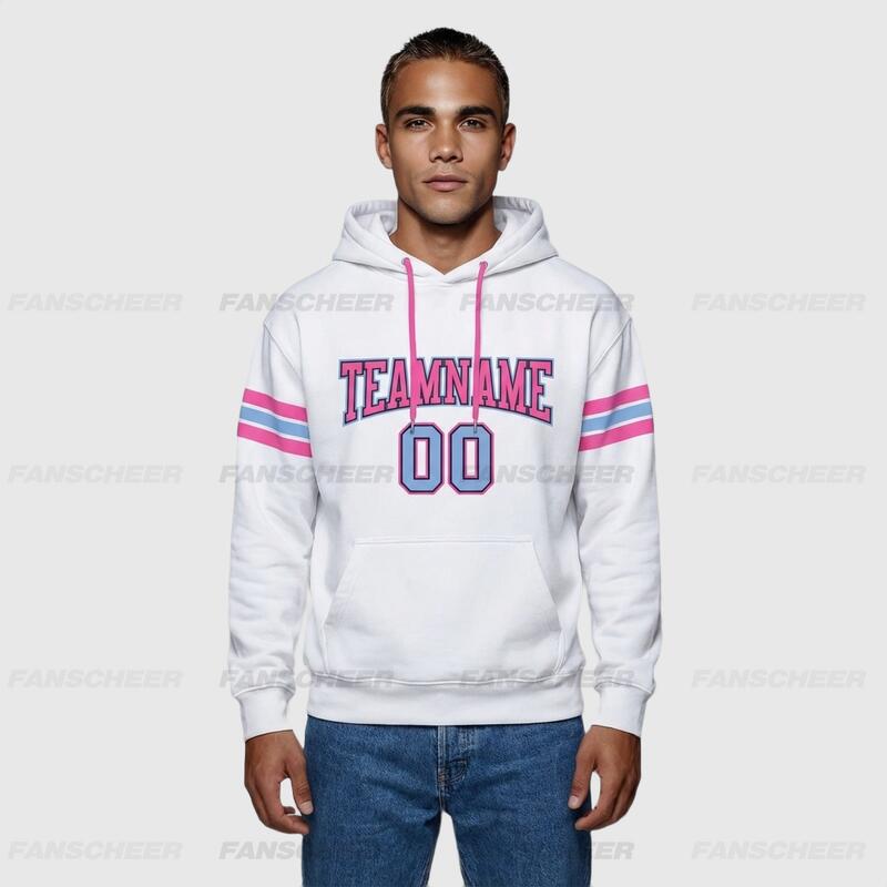 The Fanscheer custom pullover sweatshirt hoodie blends comfort with style, a masterpiece crafted with meticulous attention to detail. Slip into this custom hoodie featuring embroidered numbers and get ready to unwind while showcasing your unique flair.