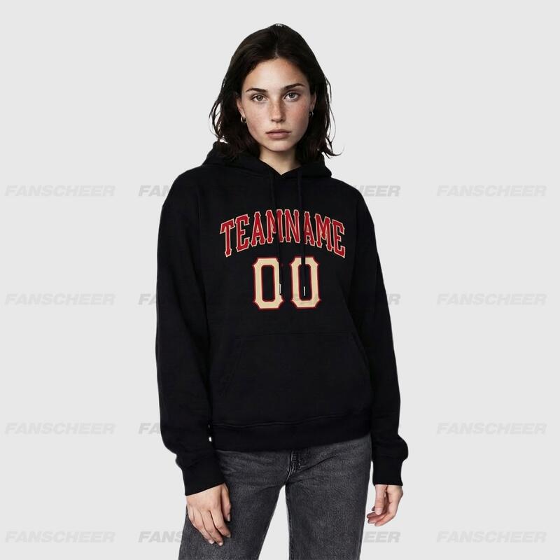 The Fanscheer custom pullover sweatshirt hoodie blends comfort with style, a masterpiece crafted with meticulous attention to detail. Slip into this custom hoodie featuring embroidered numbers and get ready to unwind while showcasing your unique flair.