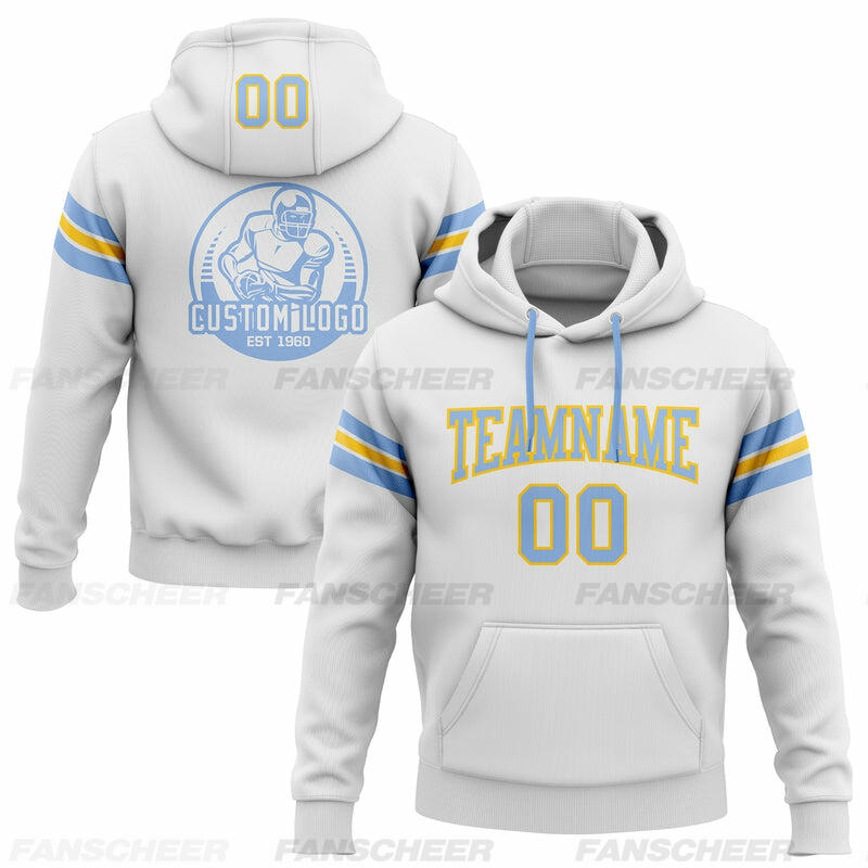 Cozy Custom Stitched White Football Pullover Hoodie Soft Fabric Custom Team Name & Unique Number