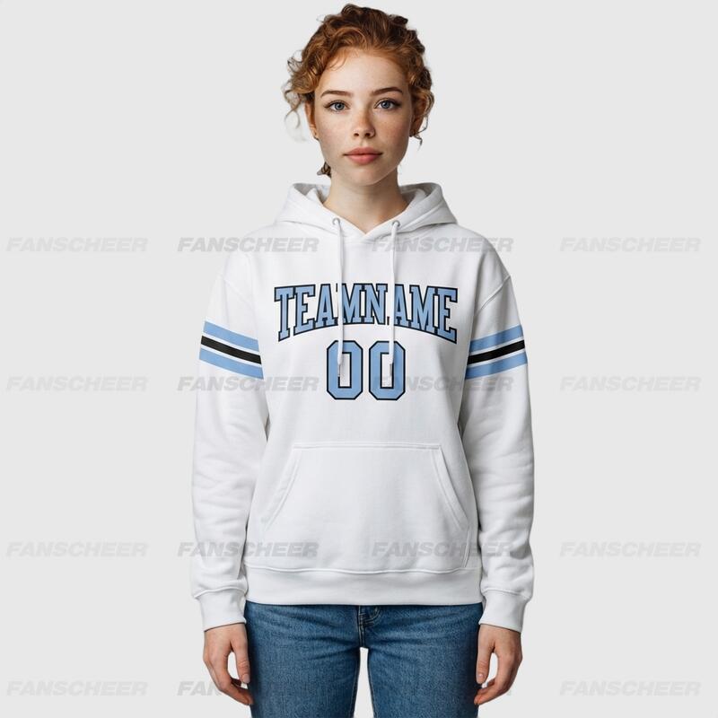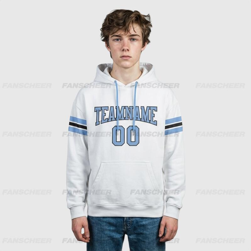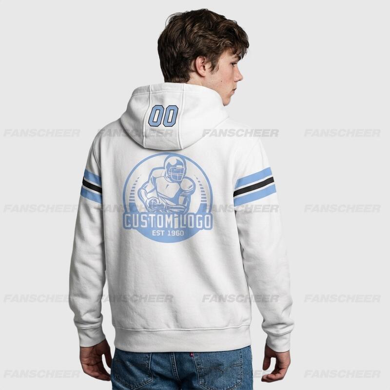 The Fanscheer custom pullover sweatshirt hoodie blends comfort with style, a masterpiece crafted with meticulous attention to detail. Slip into this custom hoodie featuring embroidered numbers and get ready to unwind while showcasing your unique flair.