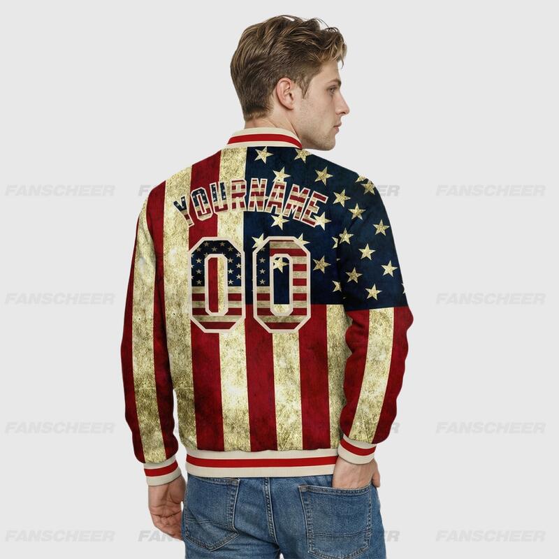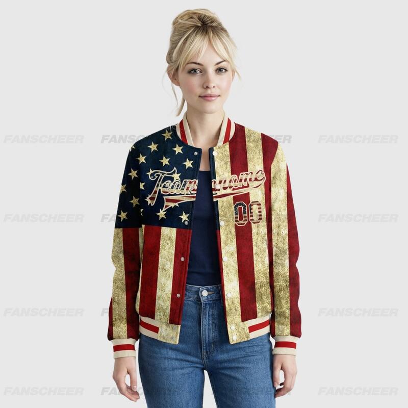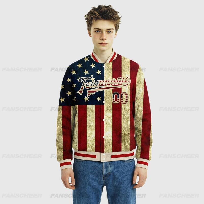 Custom American Flag Vintage Full-Snap Varsity Letterman Jacket – Ideal for Patriotic Events and Retro Casual Outings