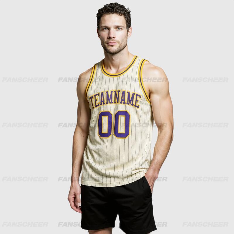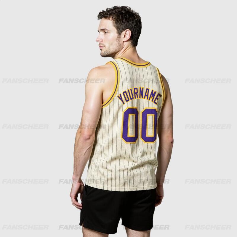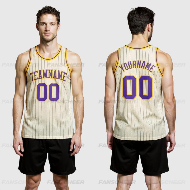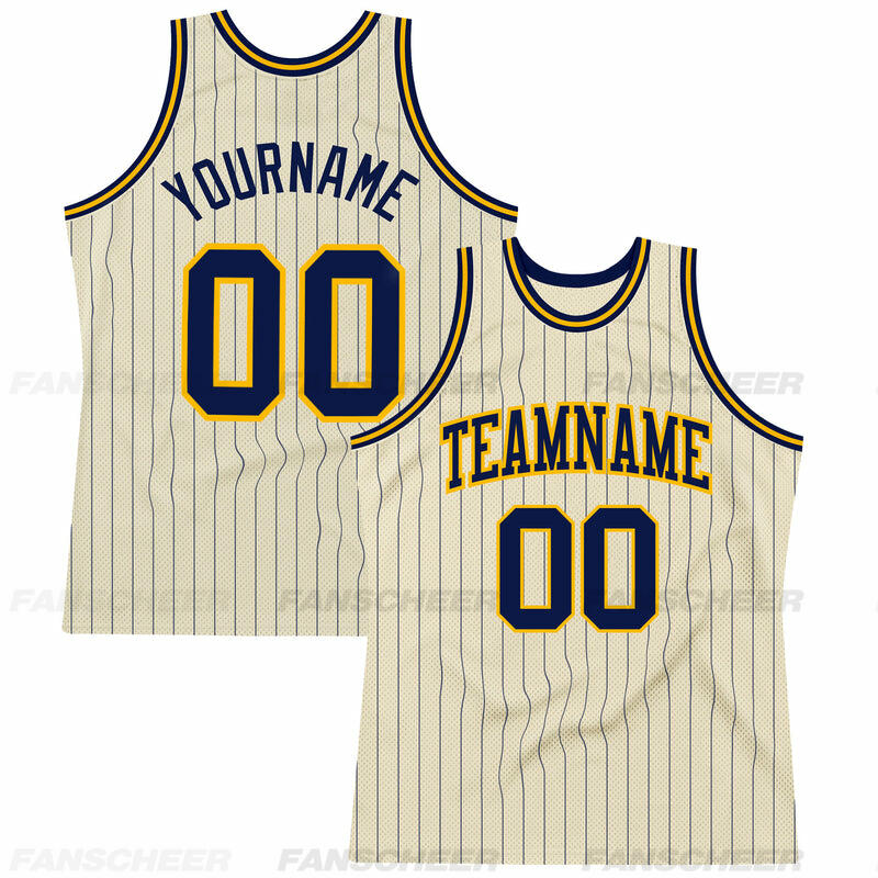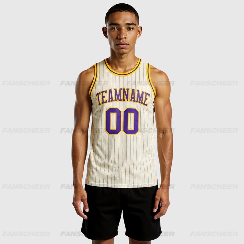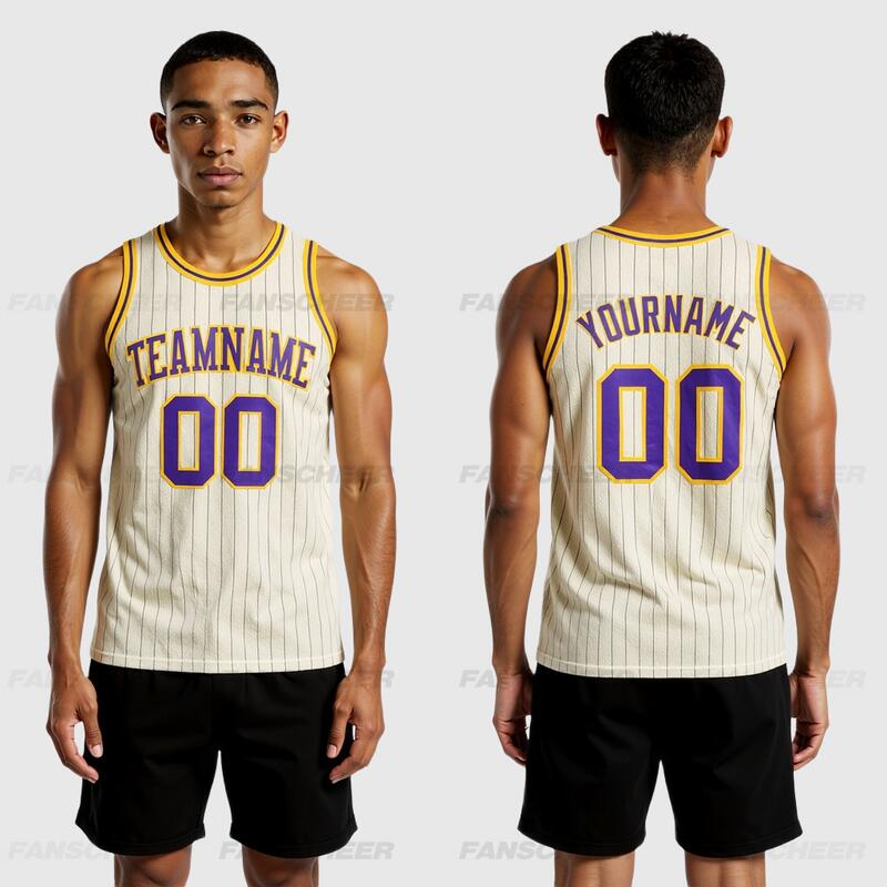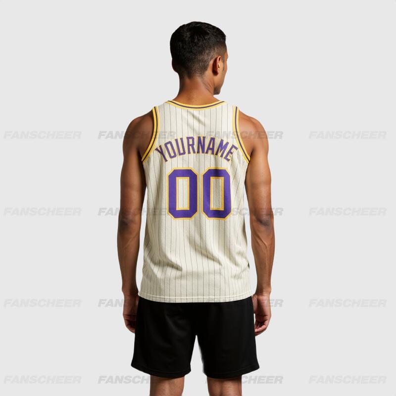Custom Authentic Pinstripe Basketball Jersey - Cream Base, Classic Stripes, Squad Numbers