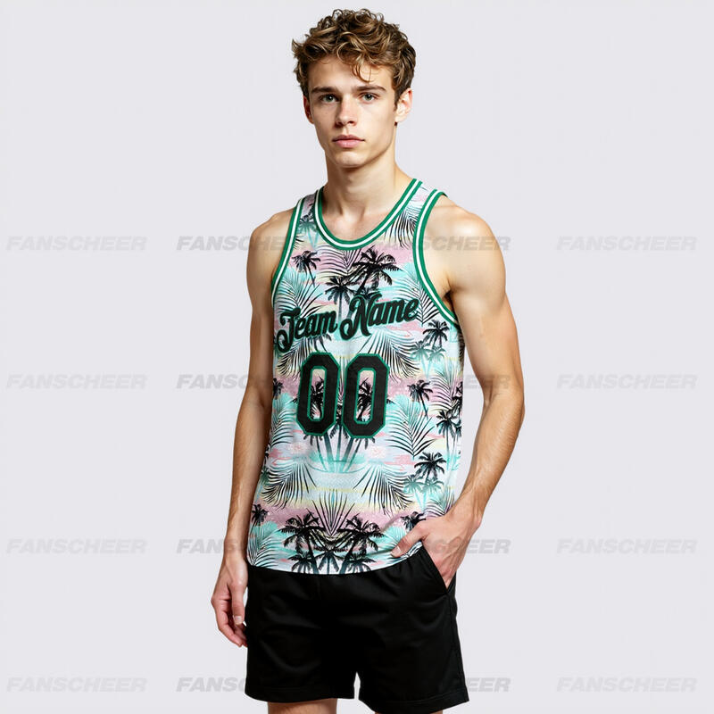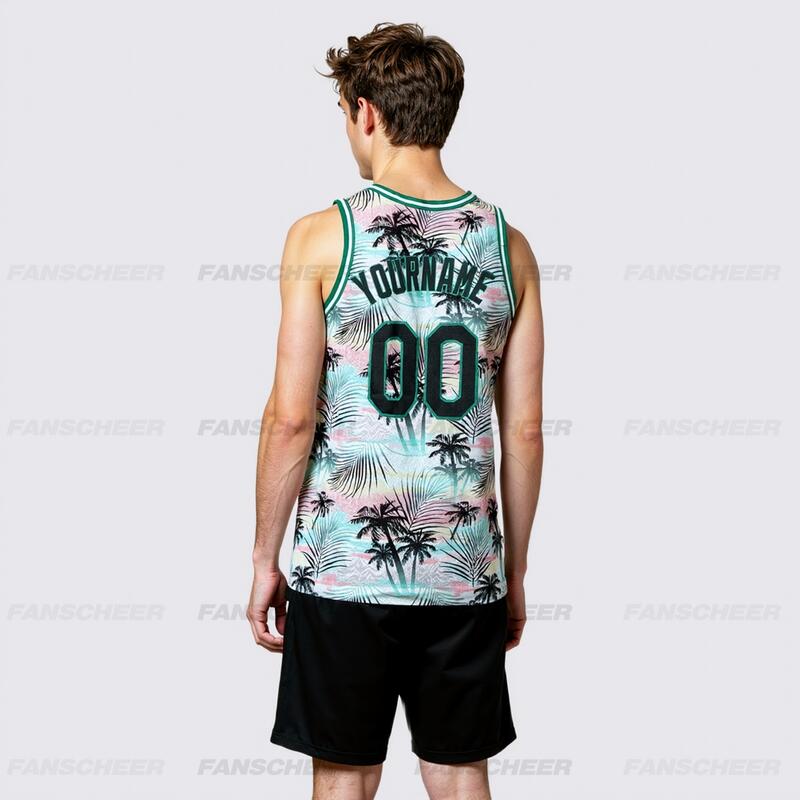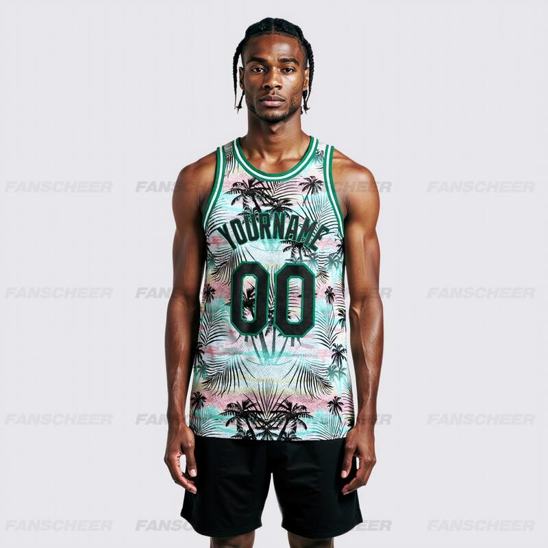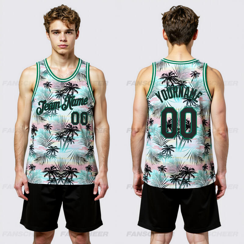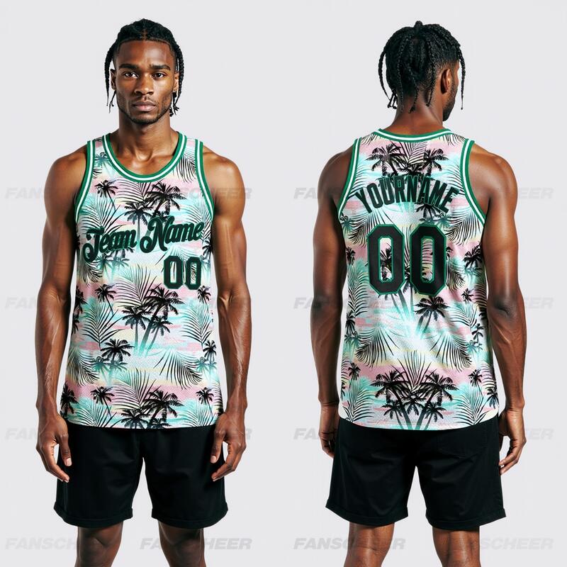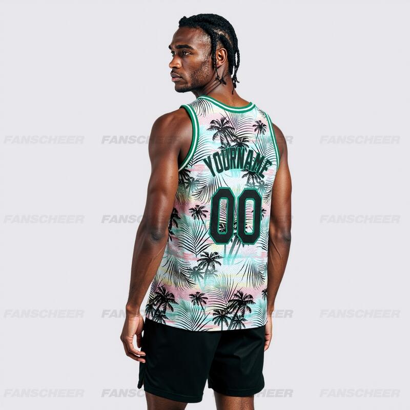 Custom Black Black-Kelly Green 3D Pattern Tropical Hawaii Palm Leaves Authentic Basketball Jersey