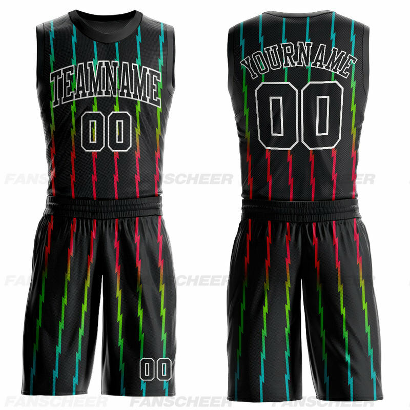 Custom Black Black-Red Round Neck Sublimation Basketball Suit Jersey