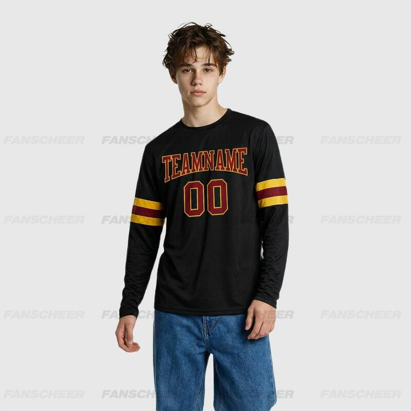 Custom Black-Crimson Long Sleeve Performance T-Shirt