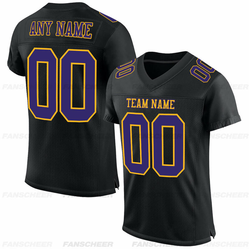 Custom Black Football Jersey Mesh Authentic Personalized Stitched Teamname