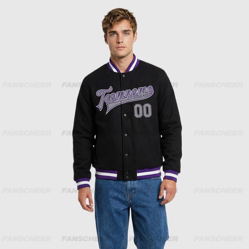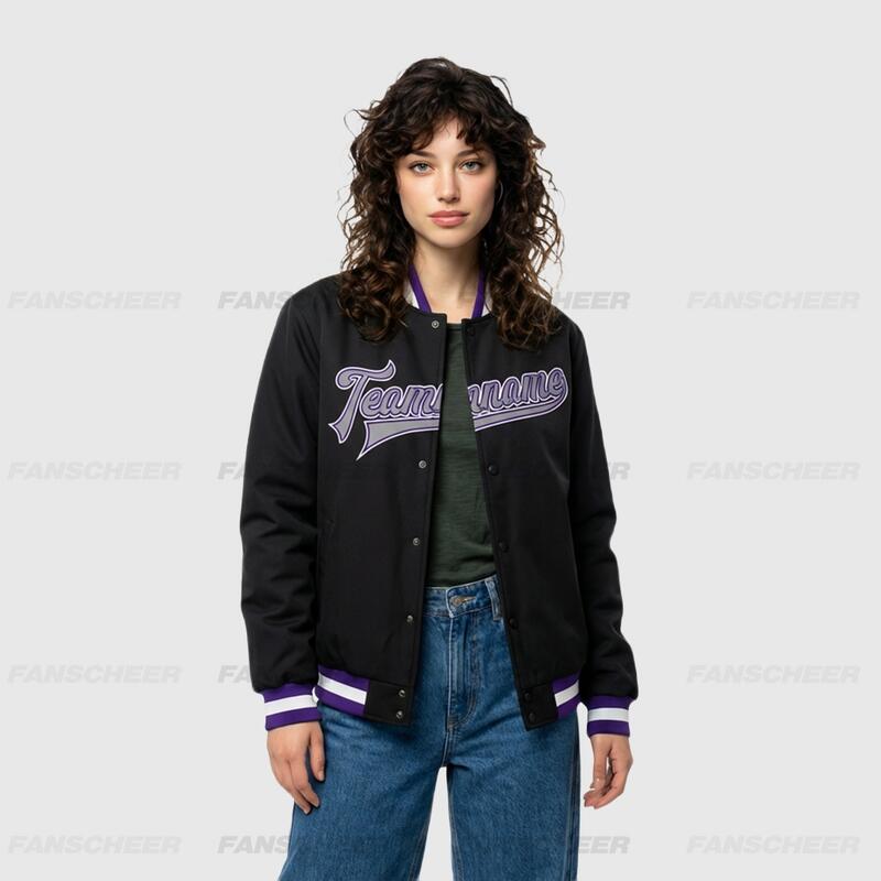 Custom Black Full-Snap Varsity Letterman Jacket Fit for Quick Casual Shopping Runs