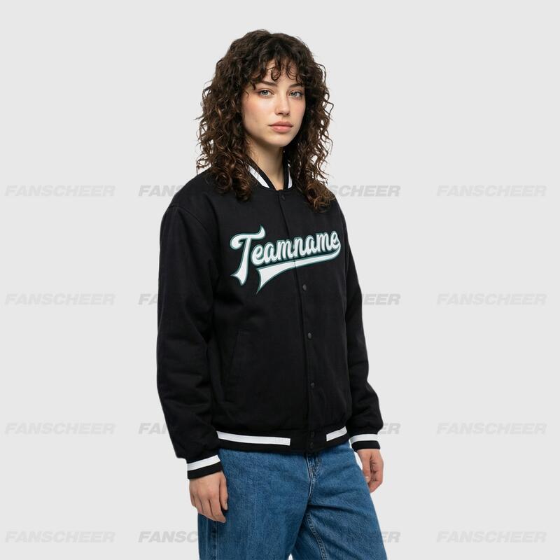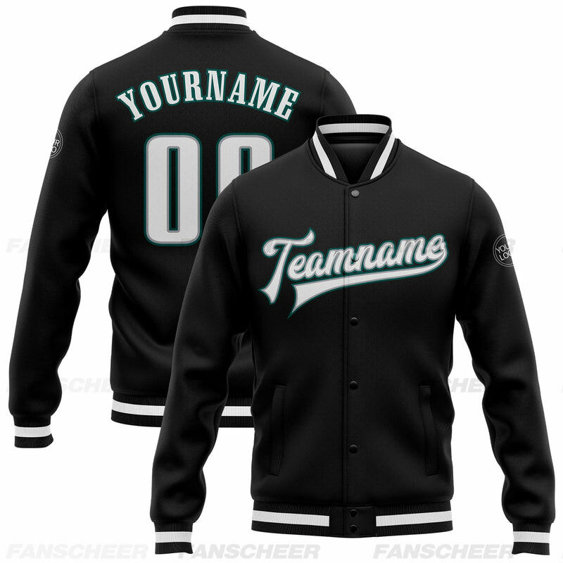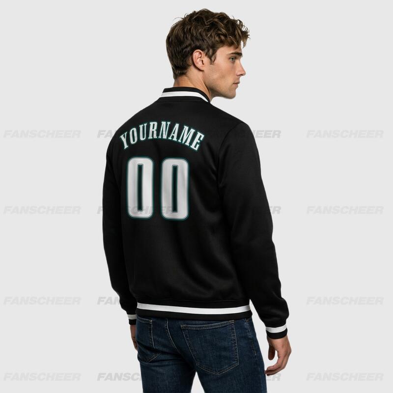 Custom Black Full-Snap Varsity Letterman Jacket Great for Casual Weekend Get-Togethers