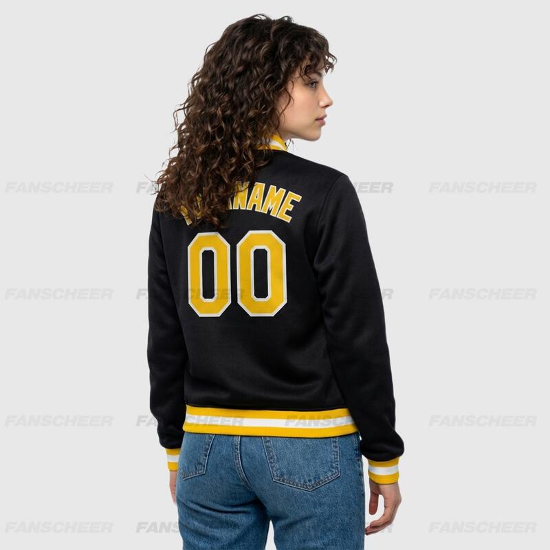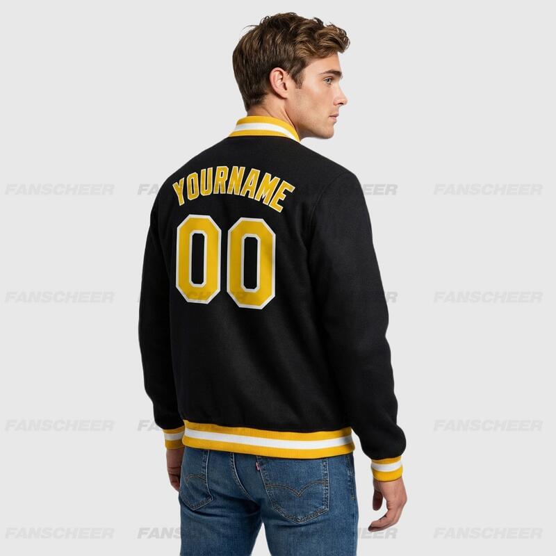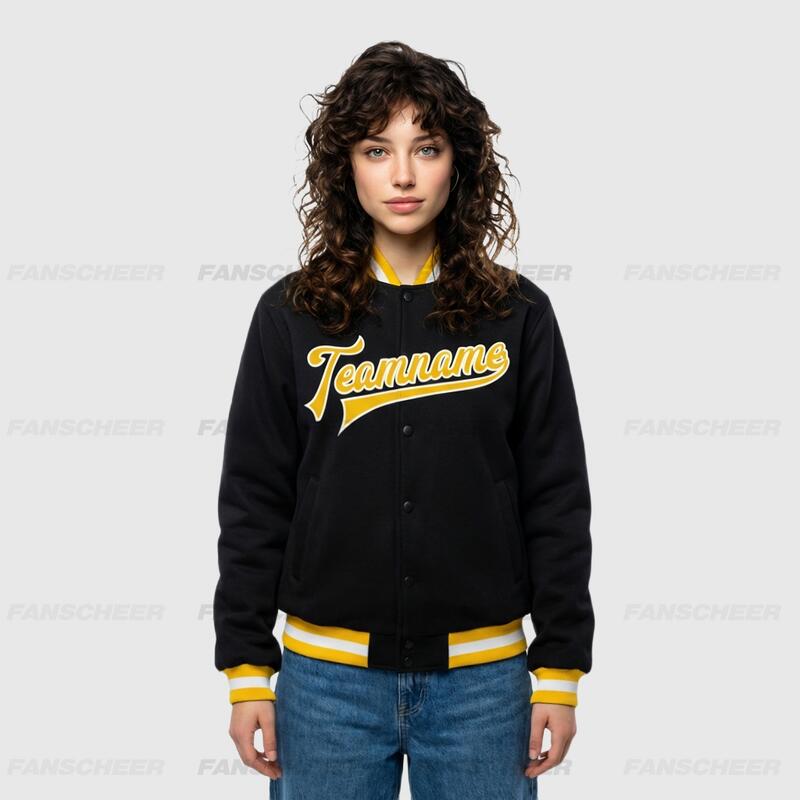 Custom Black Full-Snap Varsity Letterman Jacket Ideal for Everyday Casual Outings