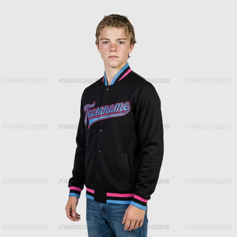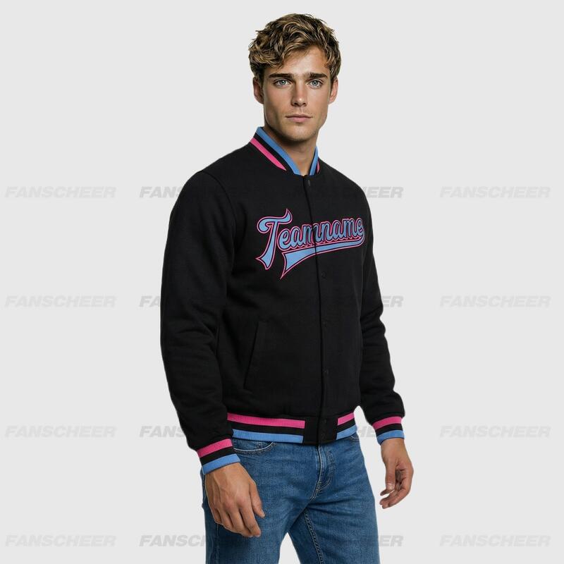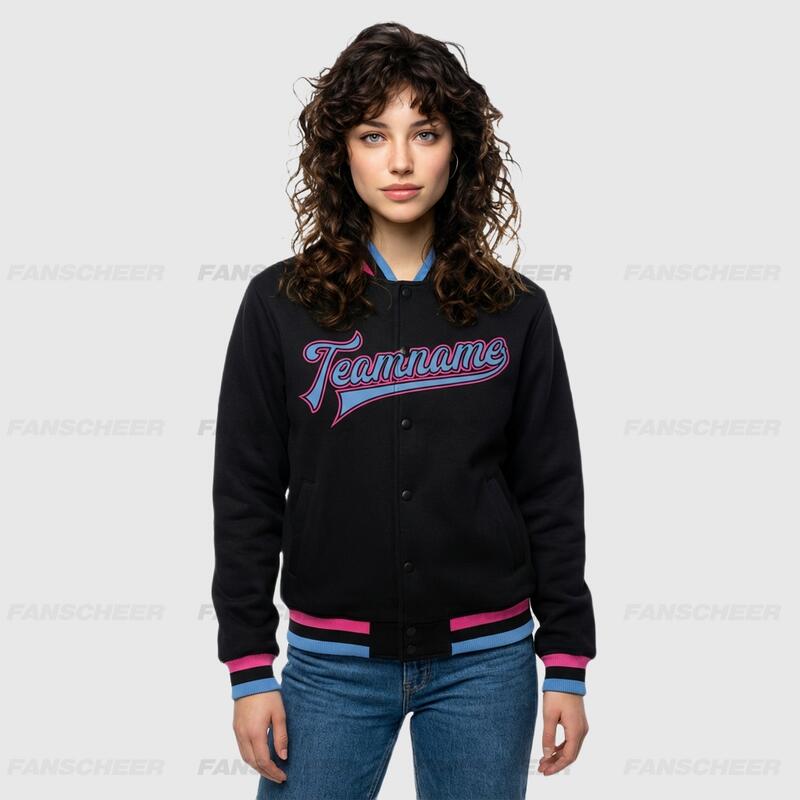 Custom Black Full-Snap Varsity Letterman Jacket Perfect for School Events