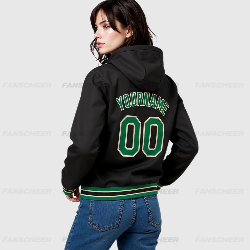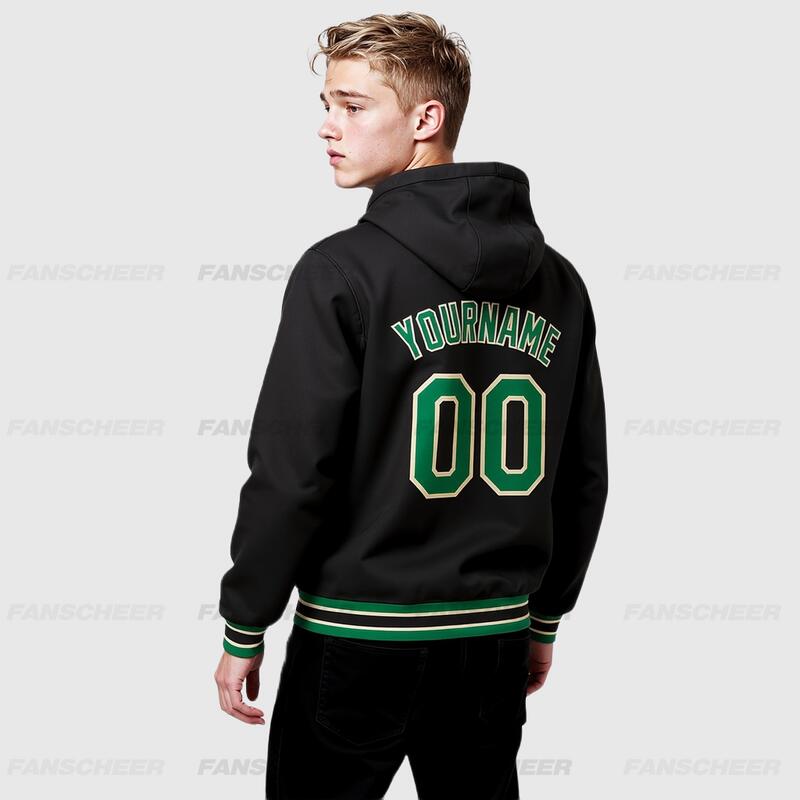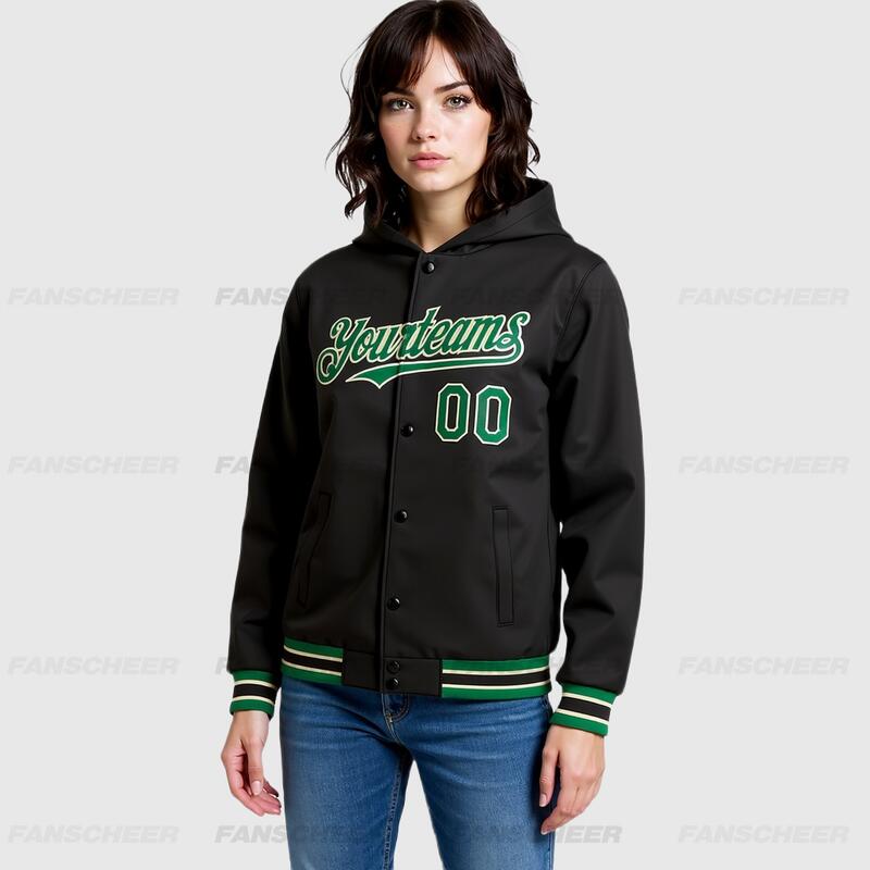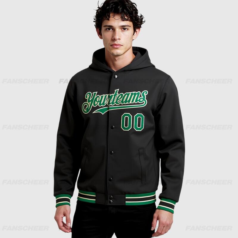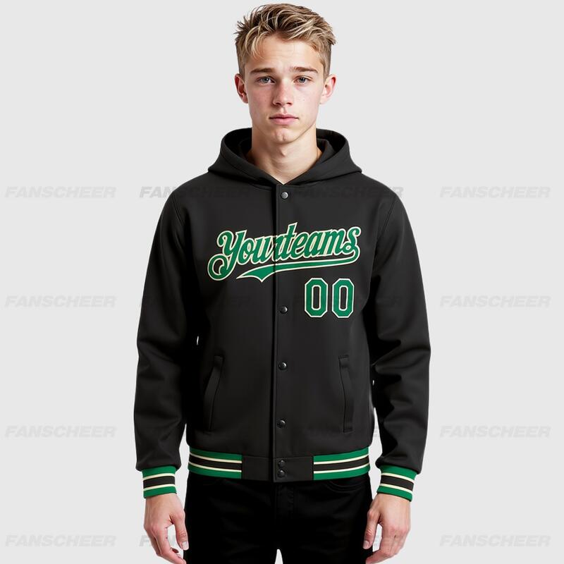 Custom Black Kelly Green Cream Vintage Full-Snap Varsity Letterman Hoodie Jacket for Daily Commute