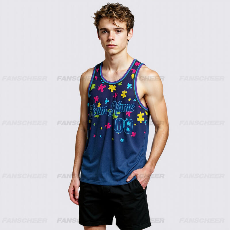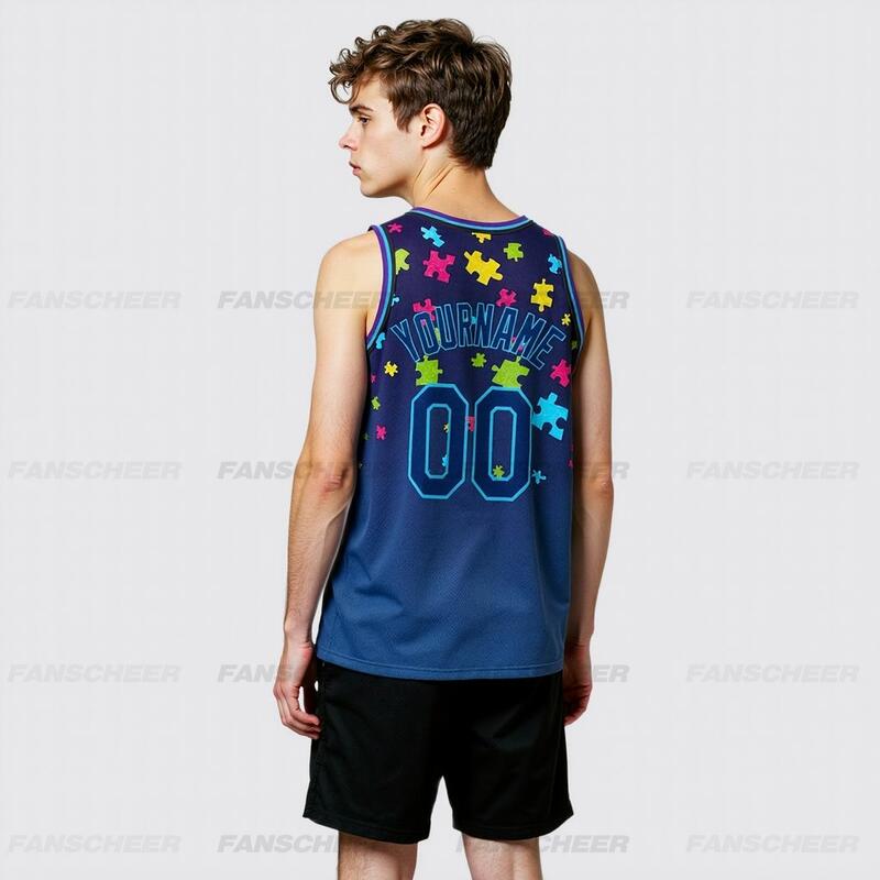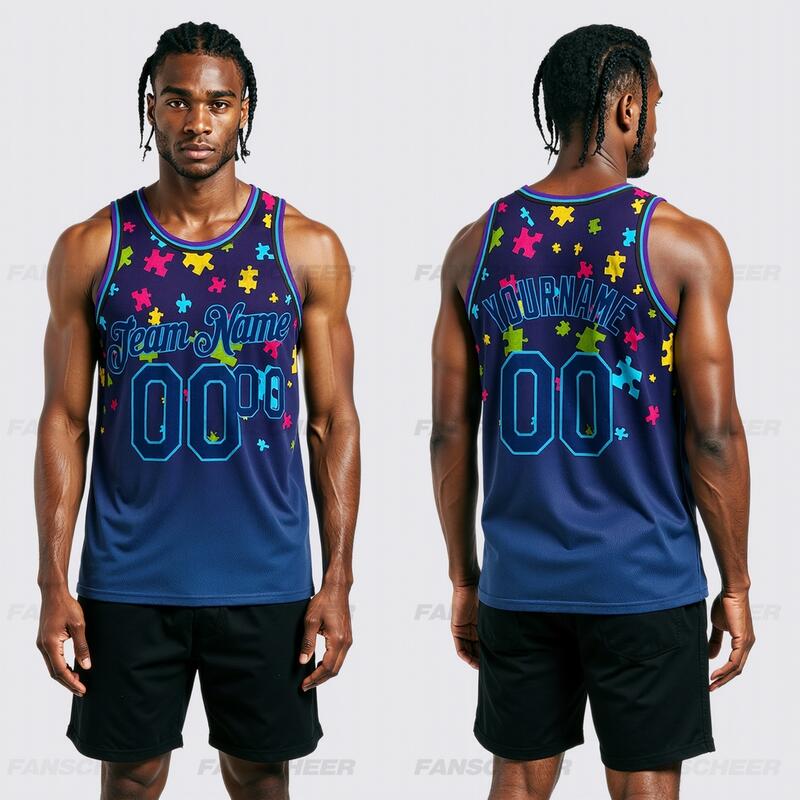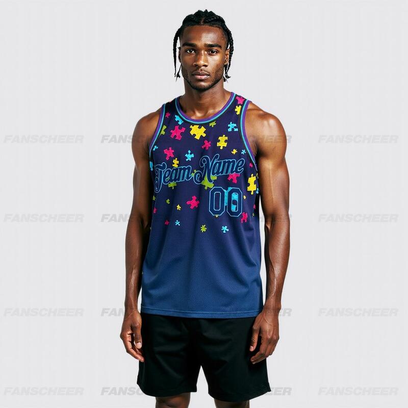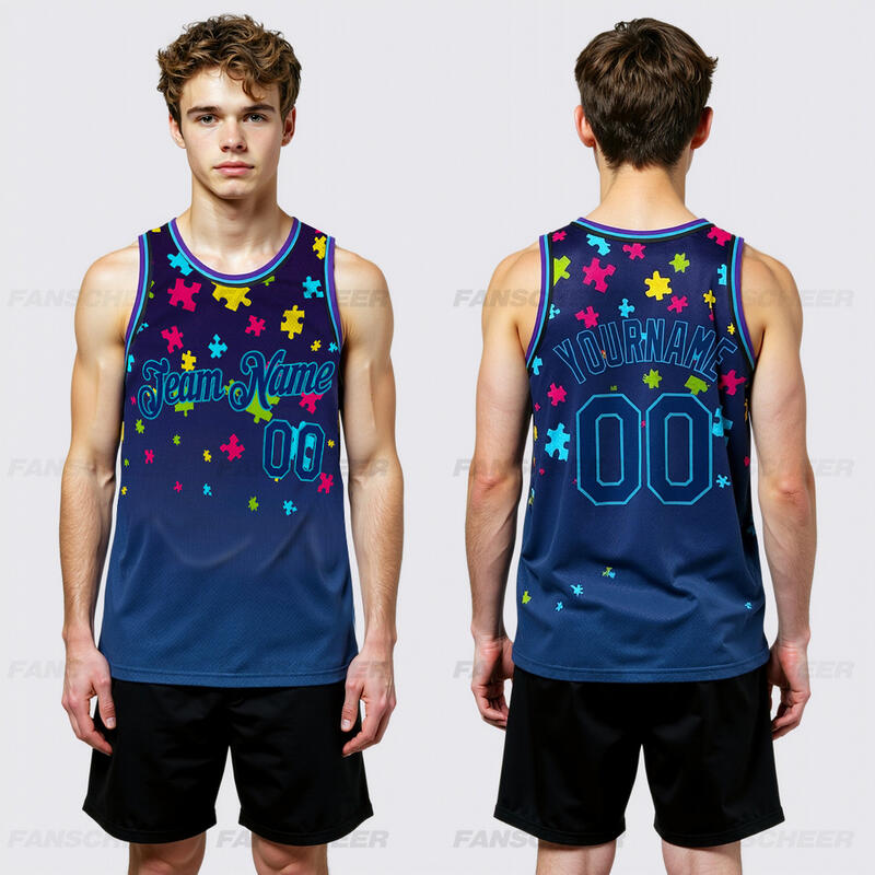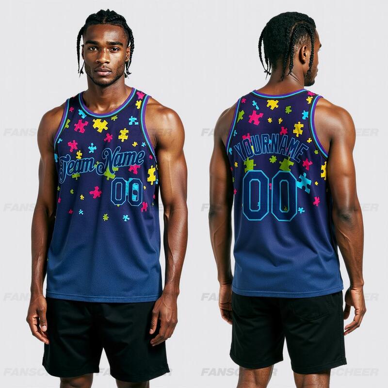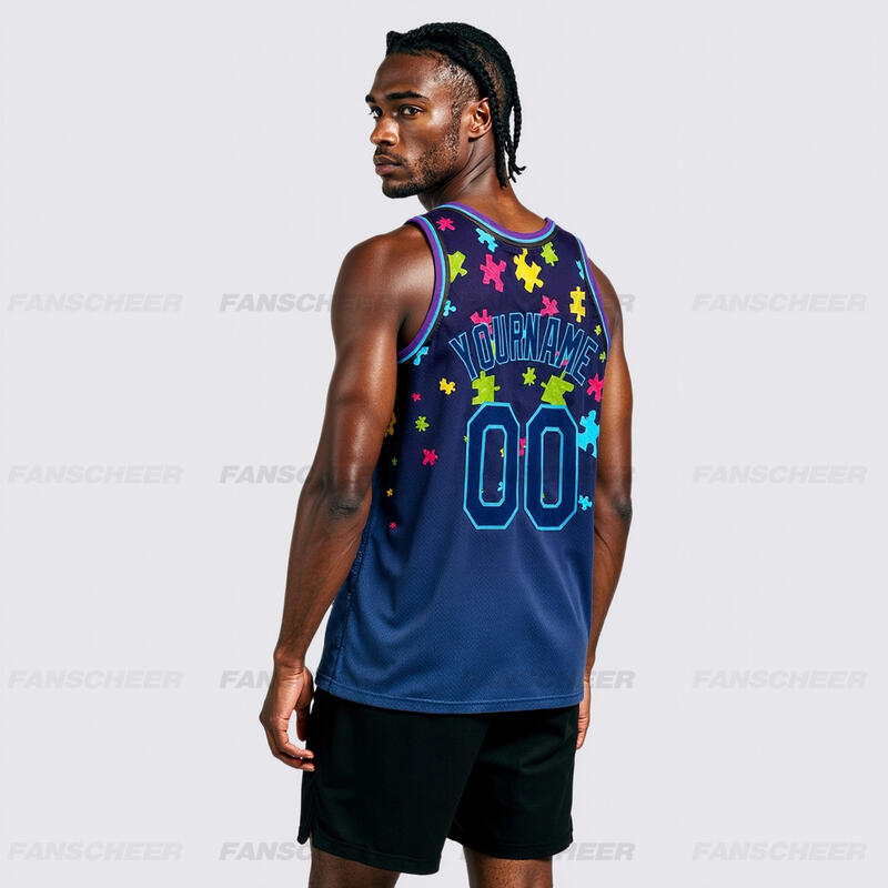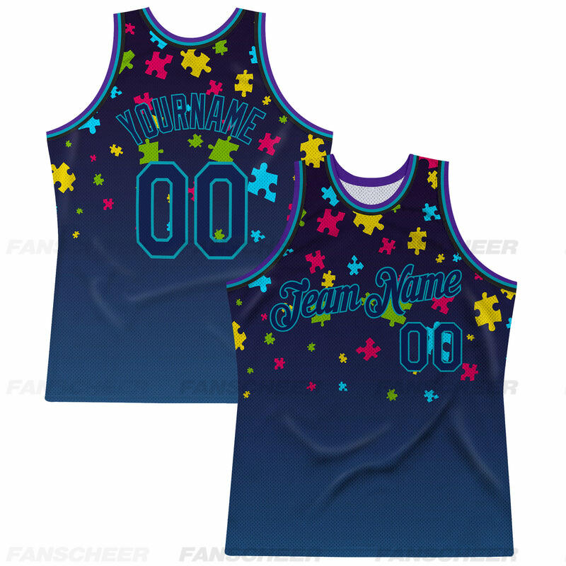 Custom Black Navy-Teal 3D Pattern Design Autism Awareness Puzzle Pieces Authentic Basketball Jersey