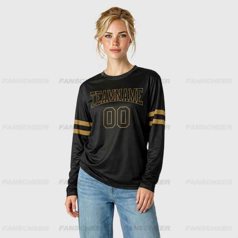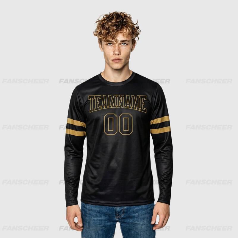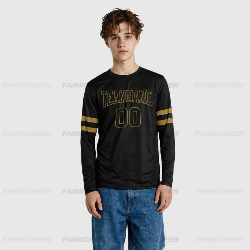 Custom Black-Old Gold Long Sleeve Performance T-Shirt