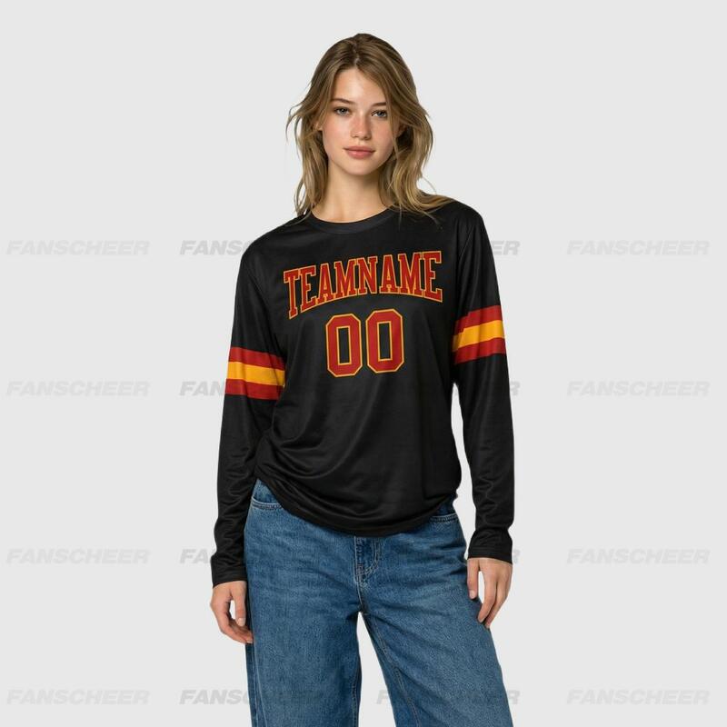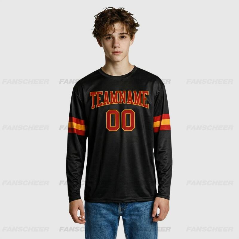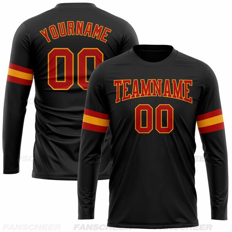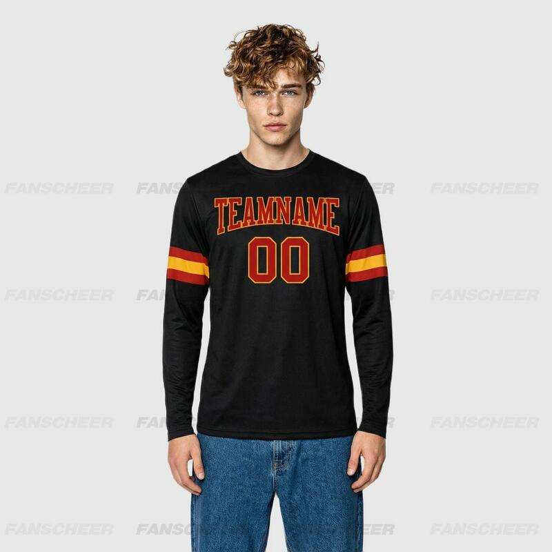 Custom Black-Orange Long Sleeve Performance T-Shirt