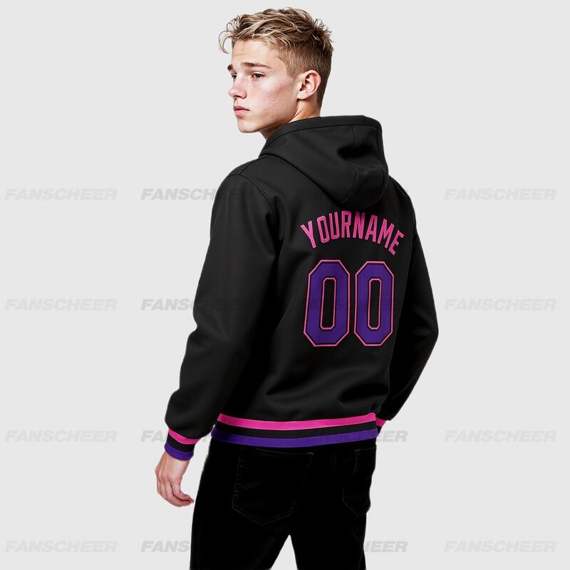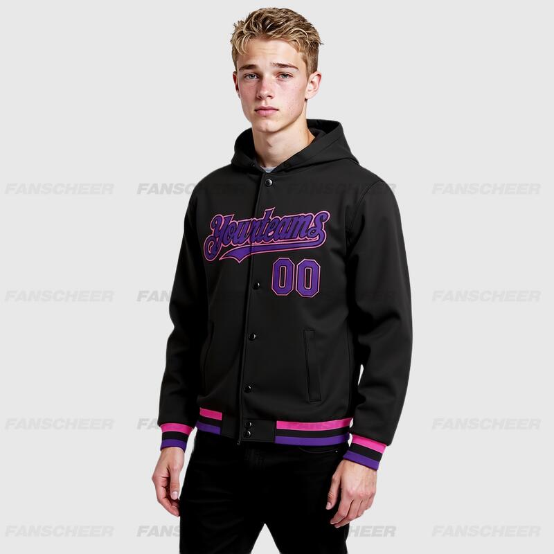 Custom Black Vintage Full-Snap Varsity Letterman Hoodie Jacket for Daily Commute