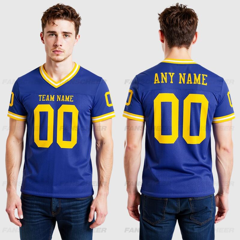 Custom Blue Classic Football Jersey Vintage Stitch Detailing, Customizable Chest Font Style