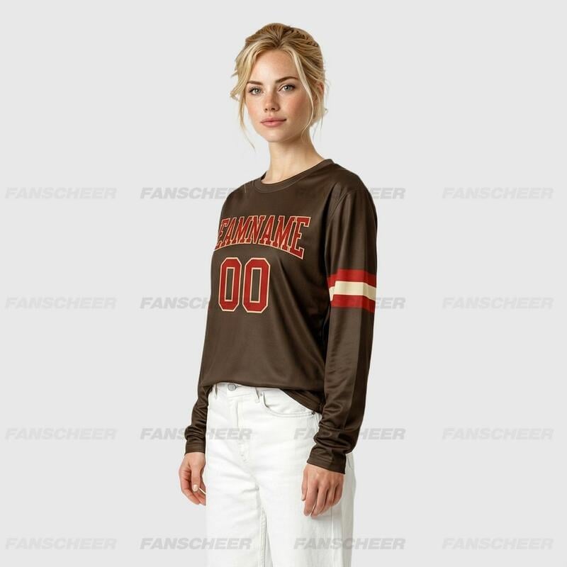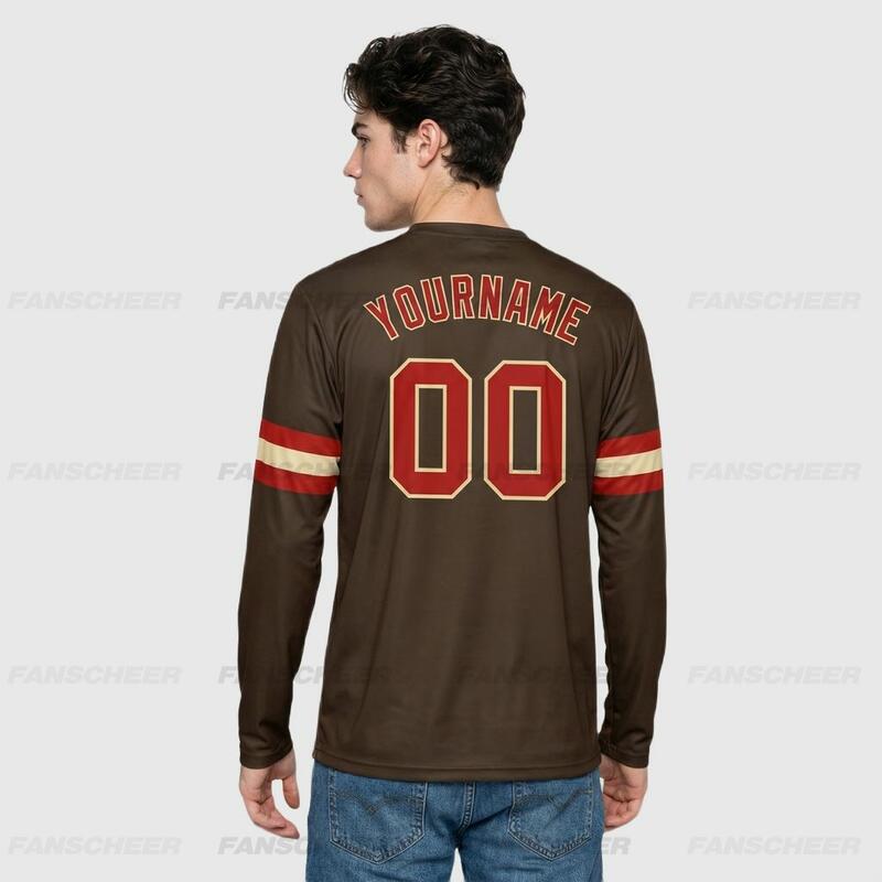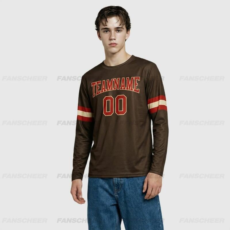 Custom Brown-Red Long Sleeve Performance T-Shirt