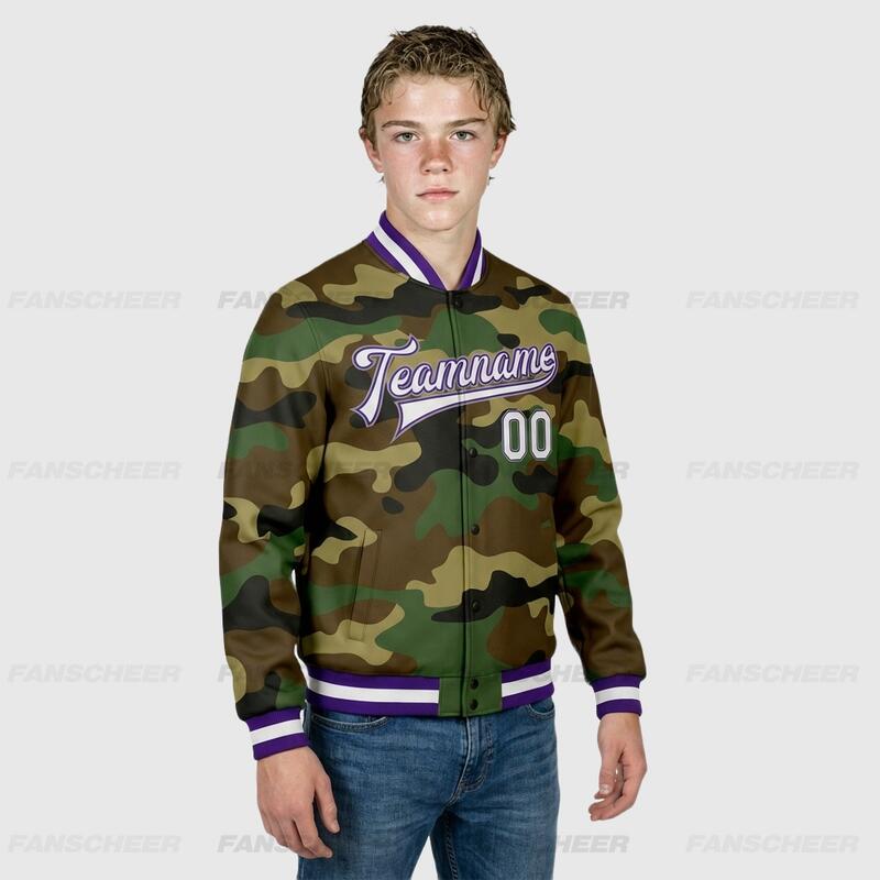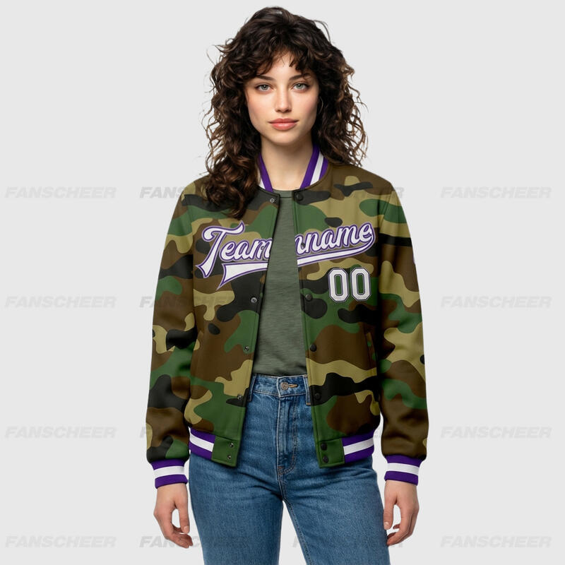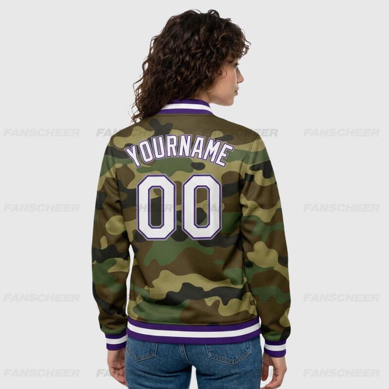 Custom Camo Full-Snap Varsity Letterman Salute To Service Jacket Perfect for Patriotic Picnics Honoring Service Members