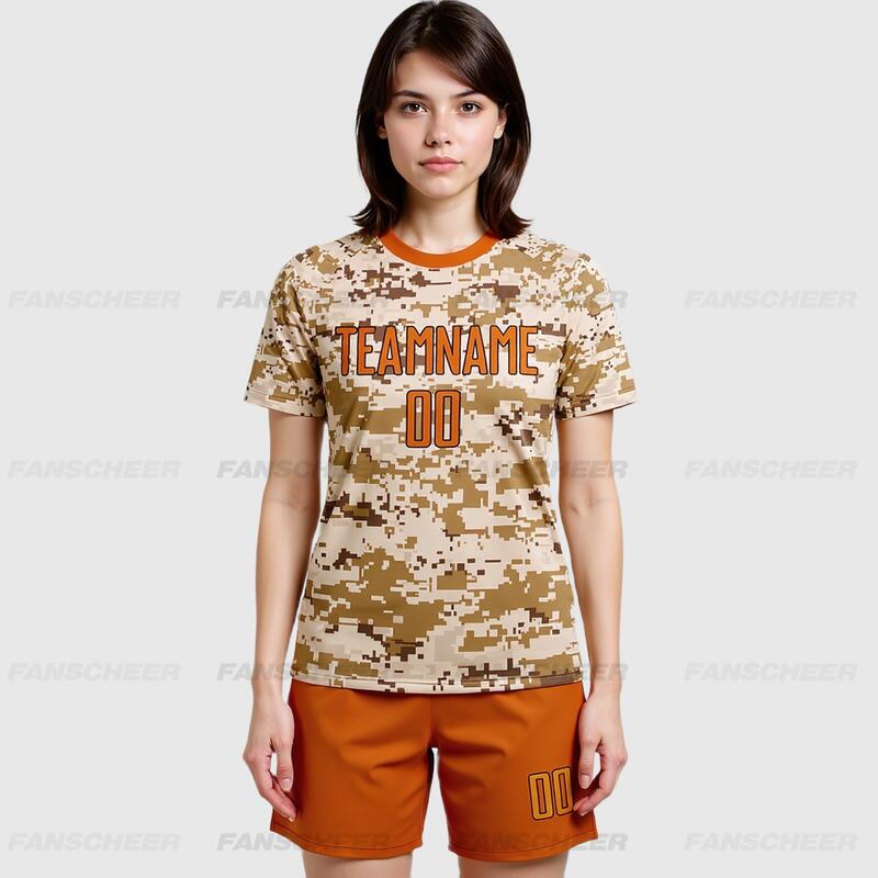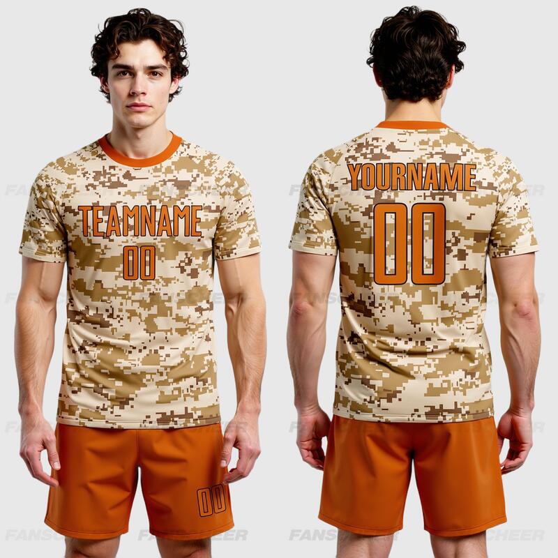 Custom Camo Texas Orange-Brown Sublimation Salute To Service Soccer Uniform Jersey