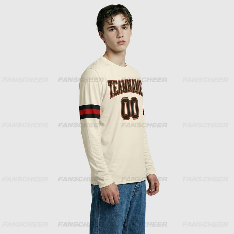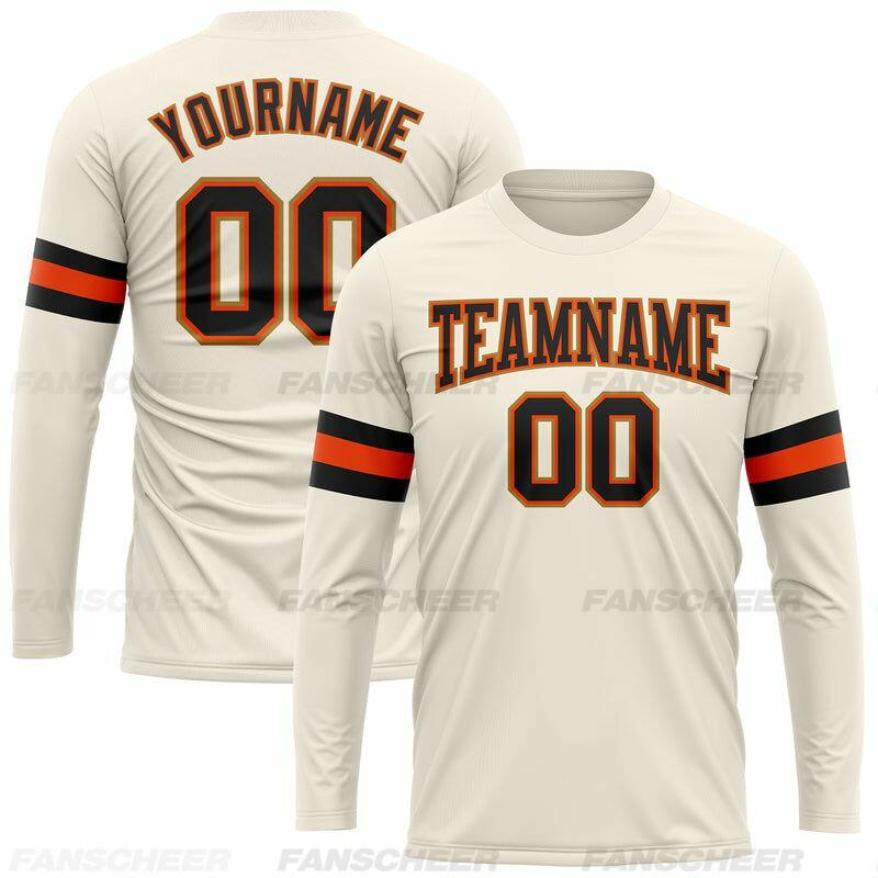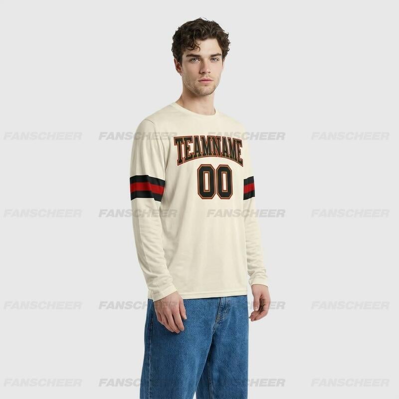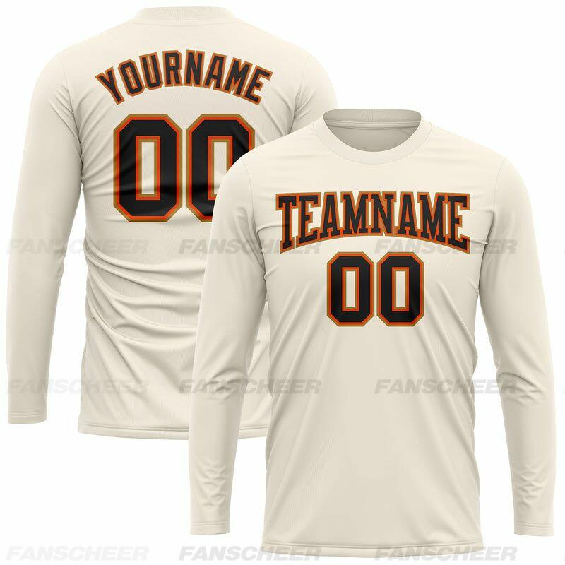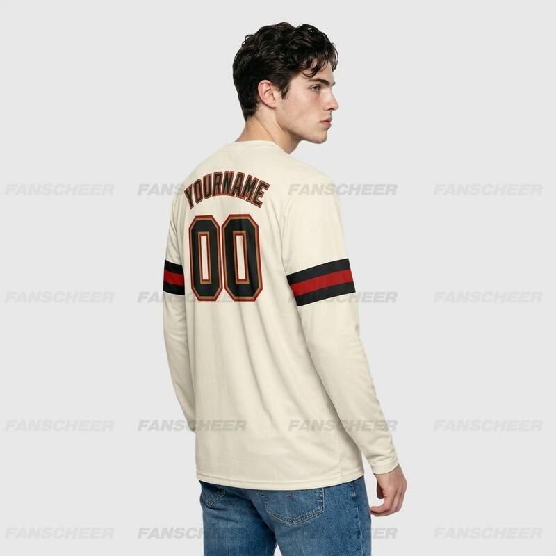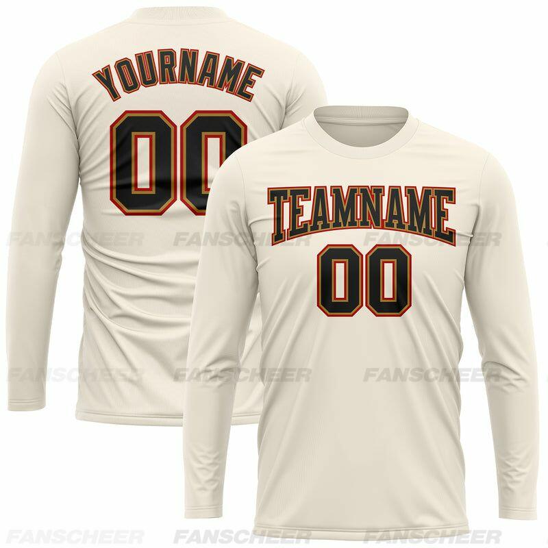 Custom Cream-Black Red Long Sleeve Performance T-Shirt