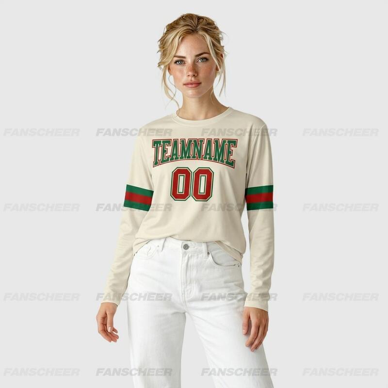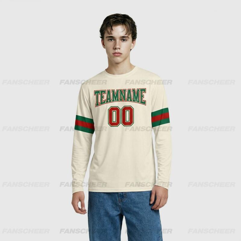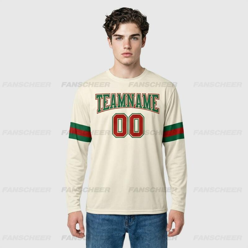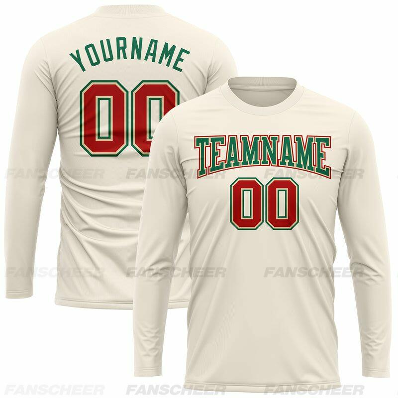 Custom Cream-Kelly Green Long Sleeve Performance T-Shirt