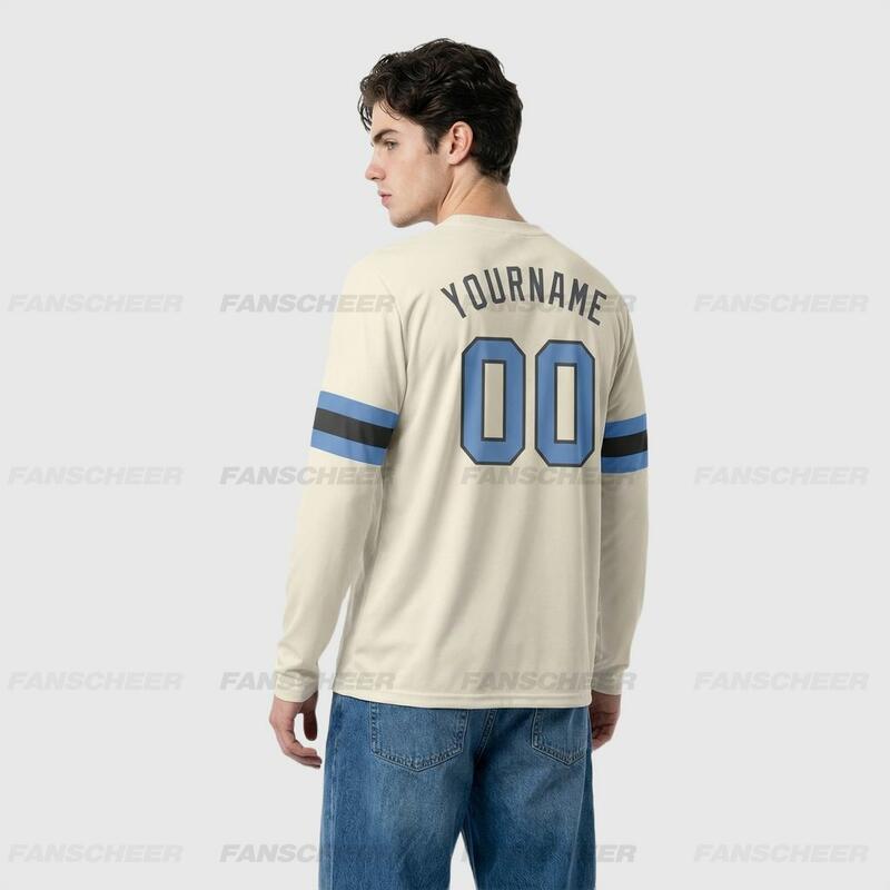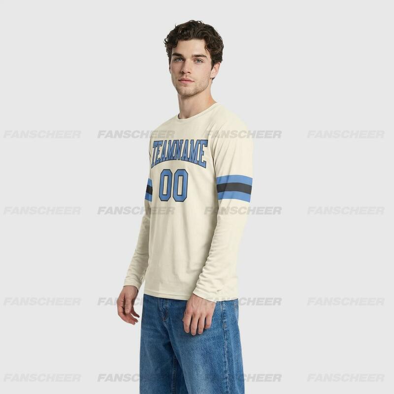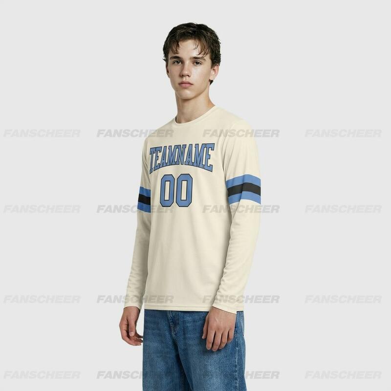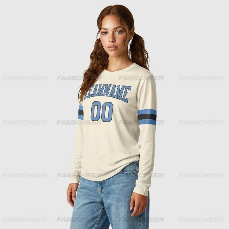 Custom Cream-Light Blue Long Sleeve Performance T-Shirt