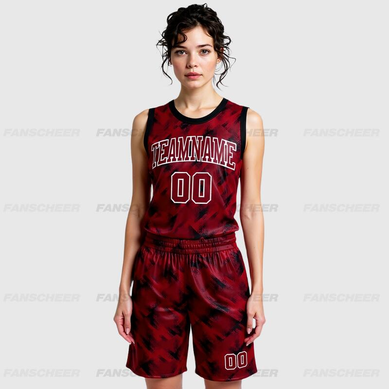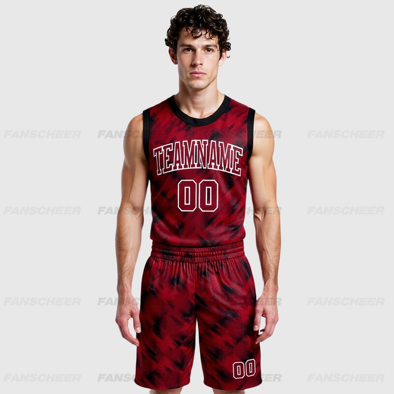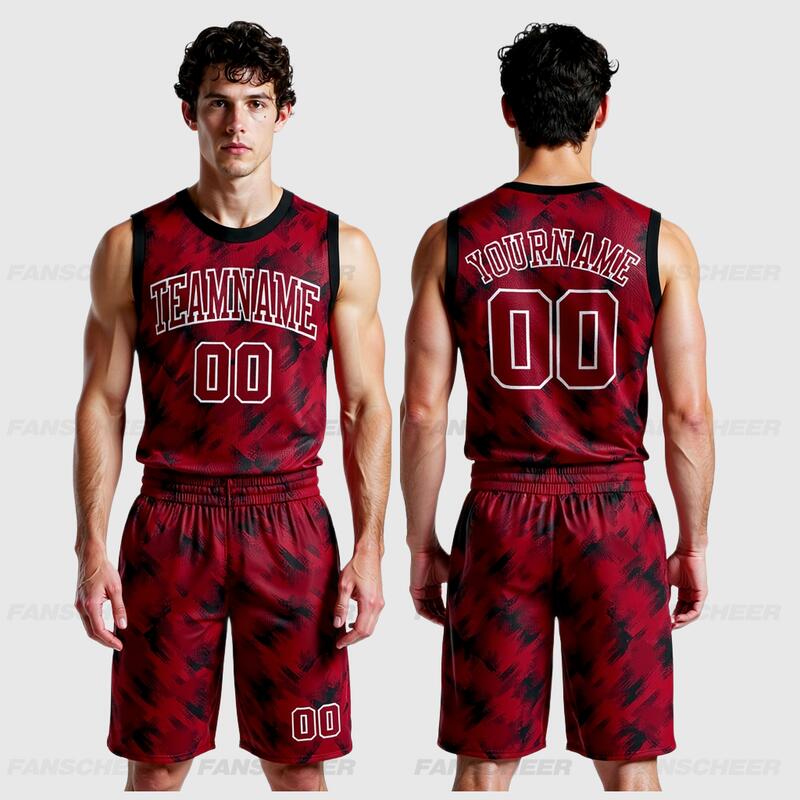 Custom Crimson Crimson-Black Round Neck Sublimation Basketball Suit Jersey