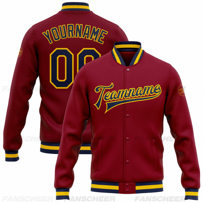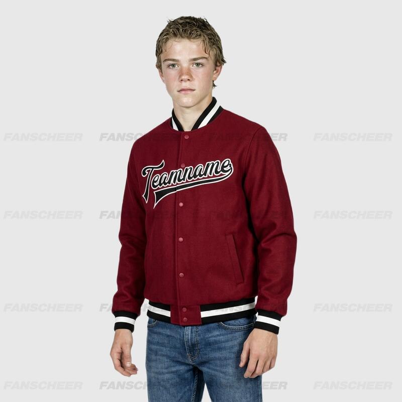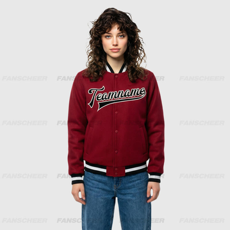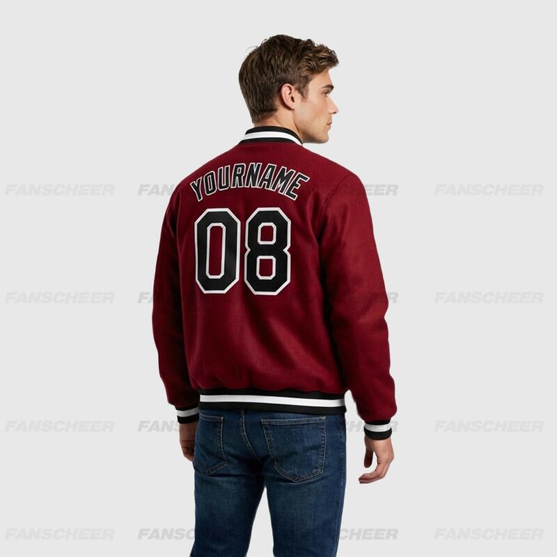 Custom Crimson Full-Snap Varsity Letterman Jacket Ideal for Everyday Casual Outings