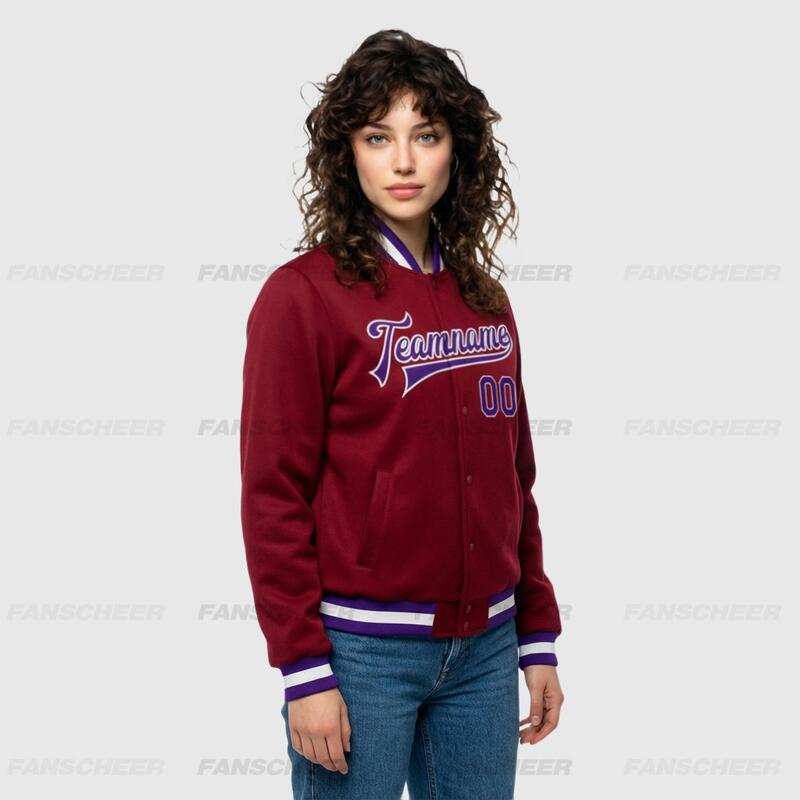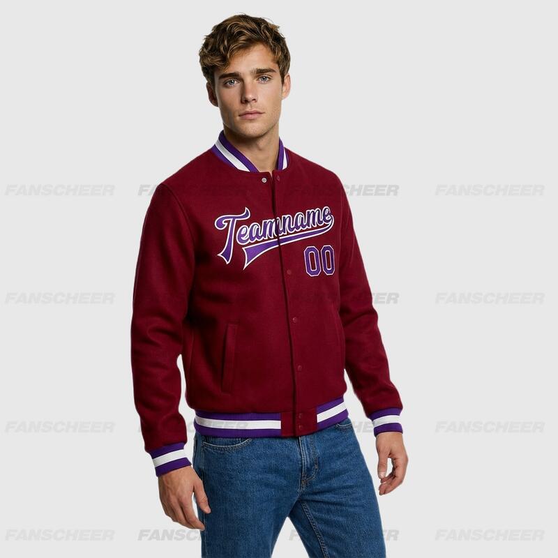 Custom Crimson Full-Snap Varsity Letterman Jacket Suitable for Casual Camping Weekends