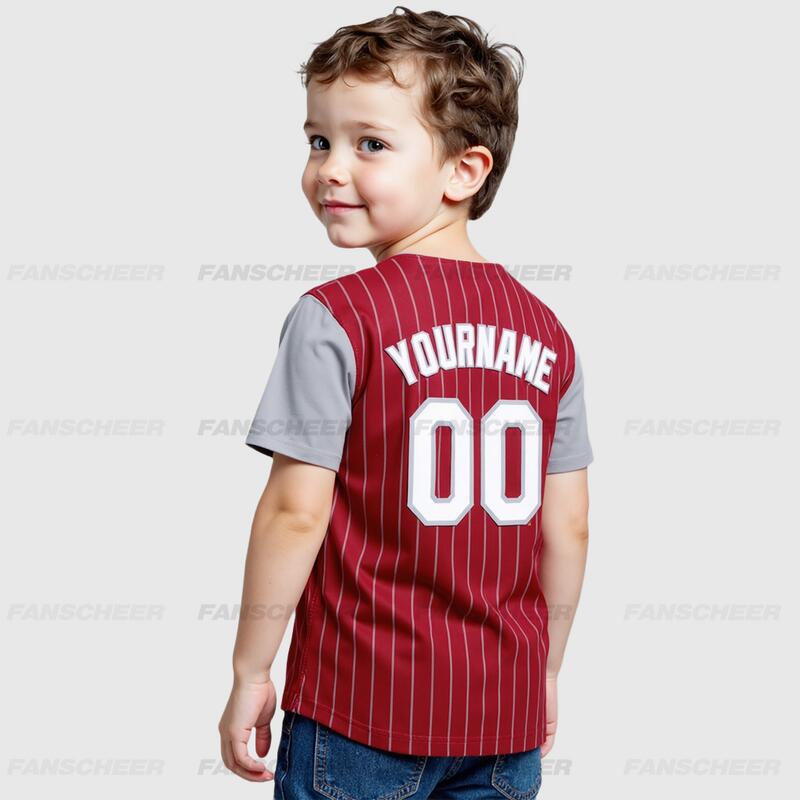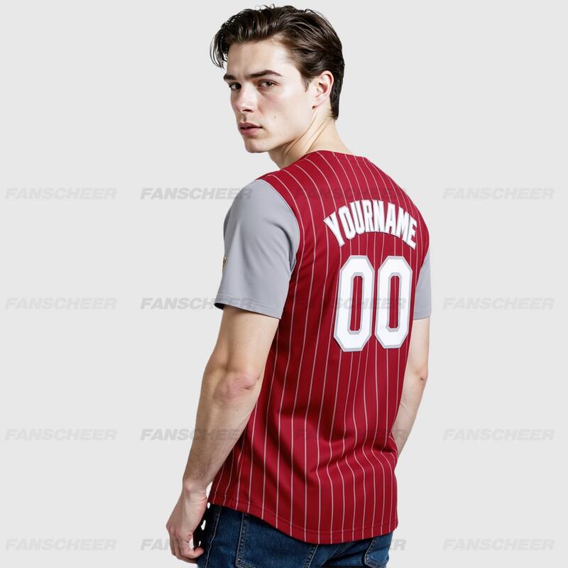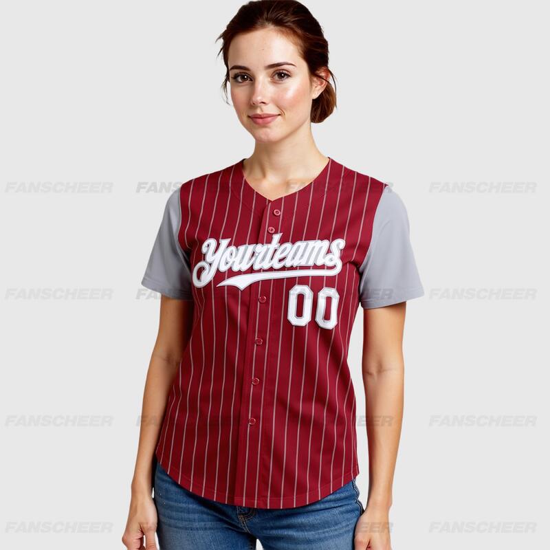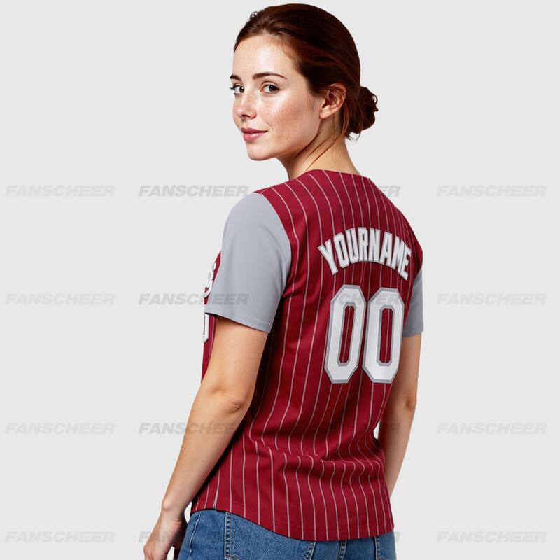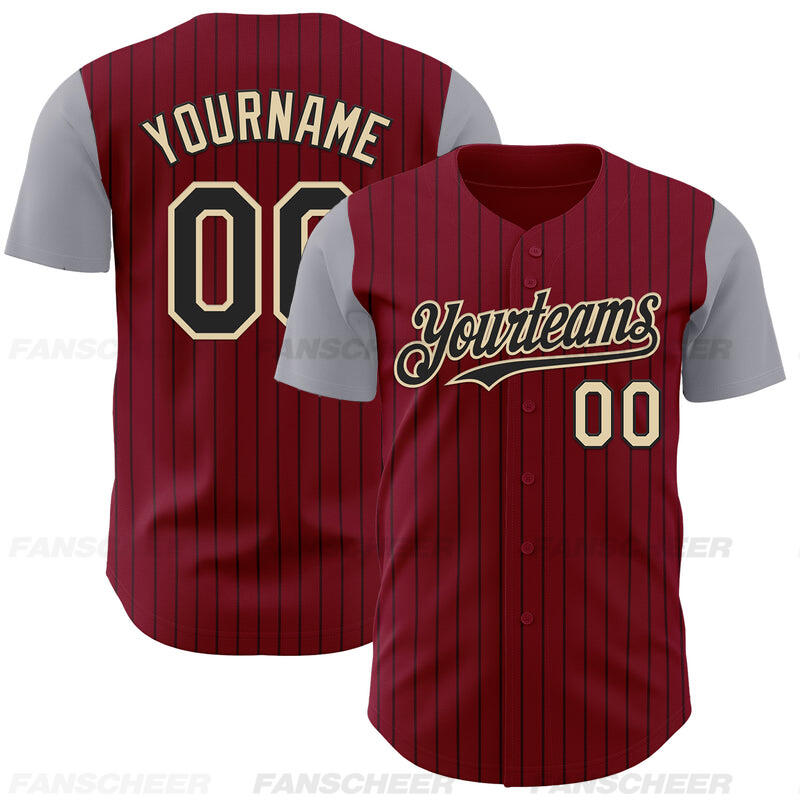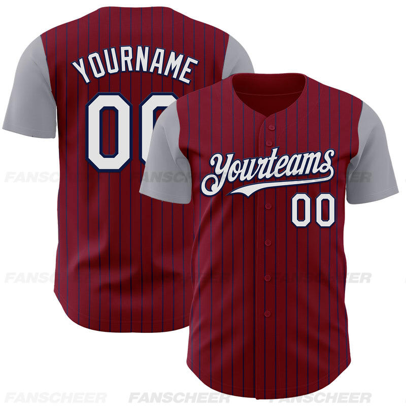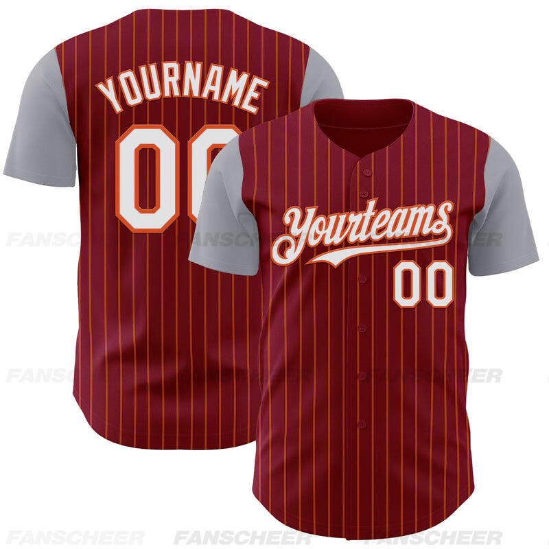 Custom Crimson Gray Authentic Pinstripe Two Tone Baseball Jersey with Personalized Number and Logo for Games Practices and Fan Events