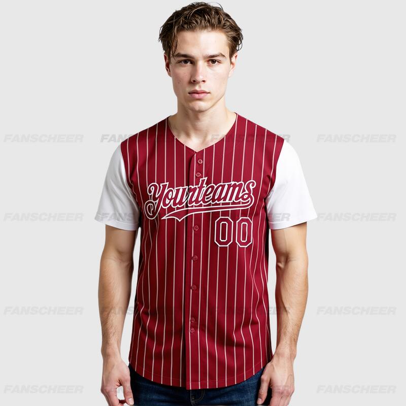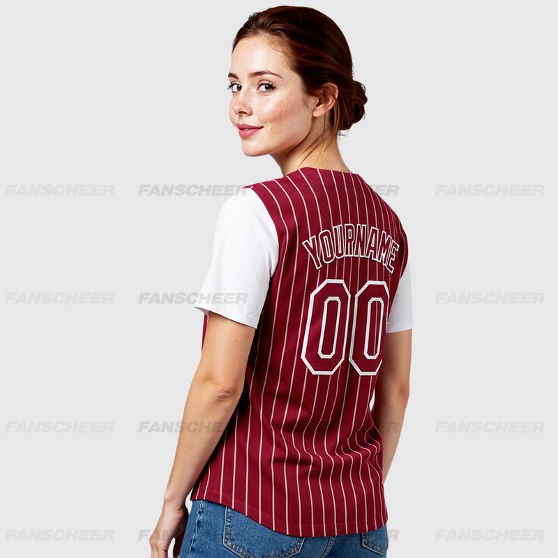 Custom Crimson White Authentic Pinstripe Two Tone Baseball Jersey with Personalized Number and Logo for Games Practices and Fan Events
