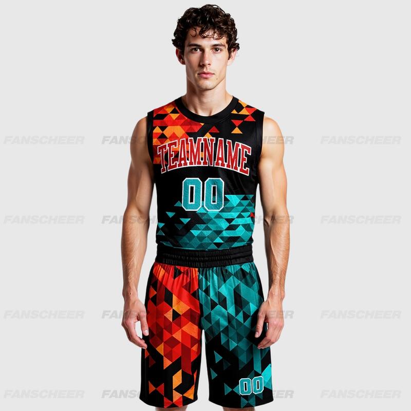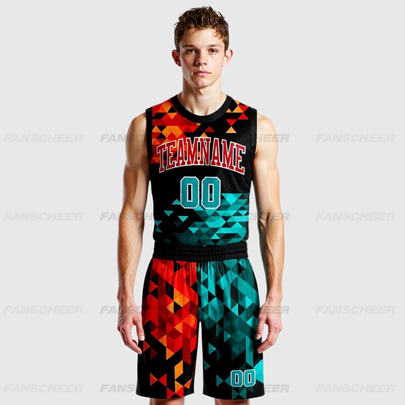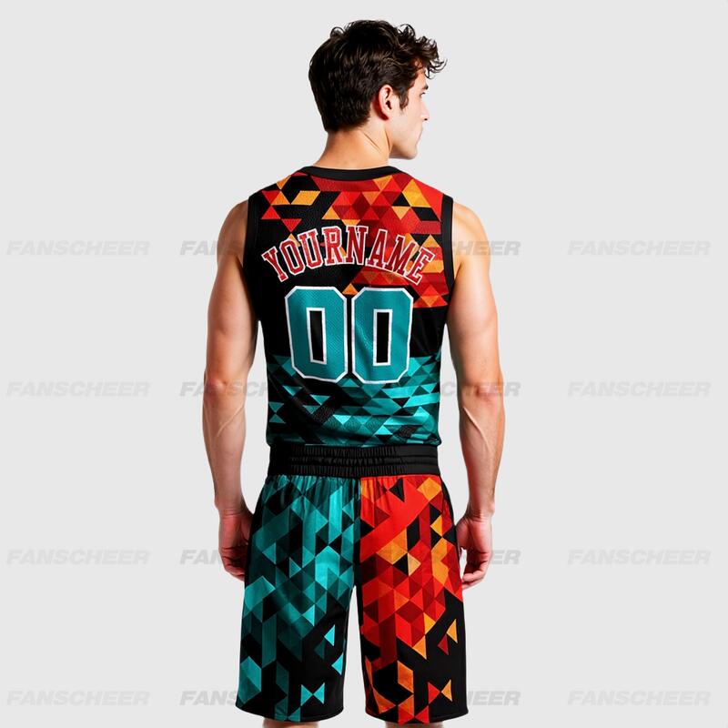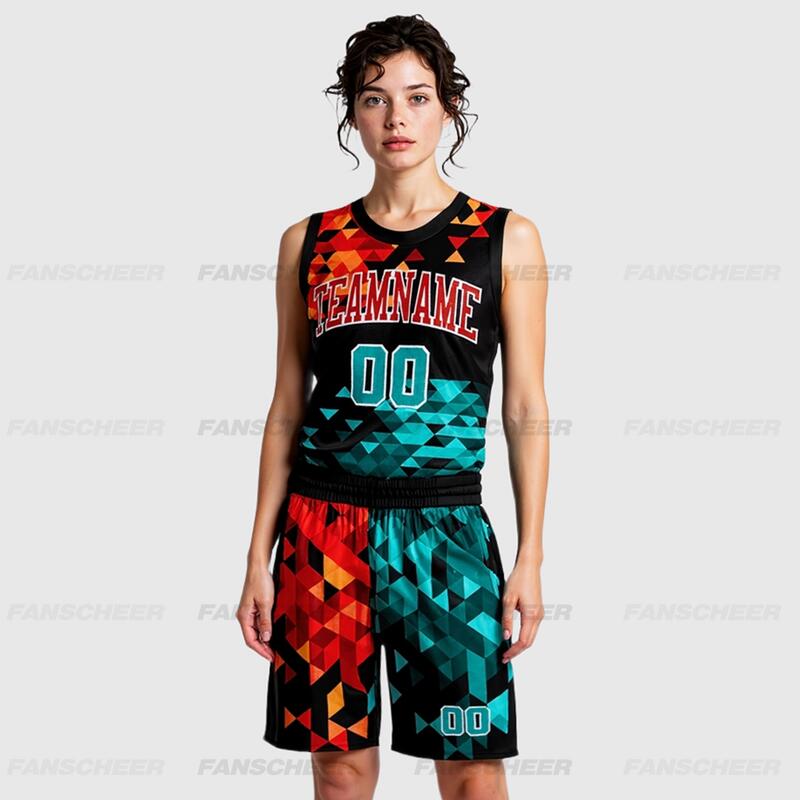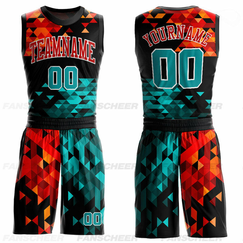 Custom Figure Aqua-Red Round Neck Sublimation Basketball Suit Jersey