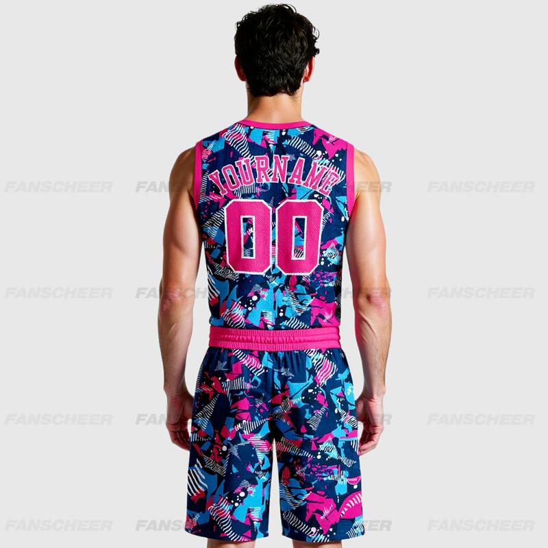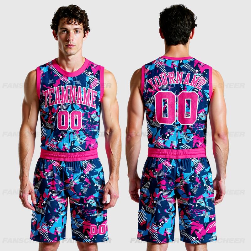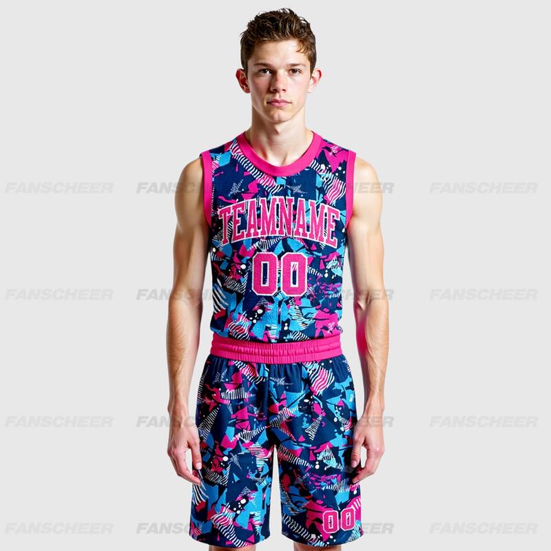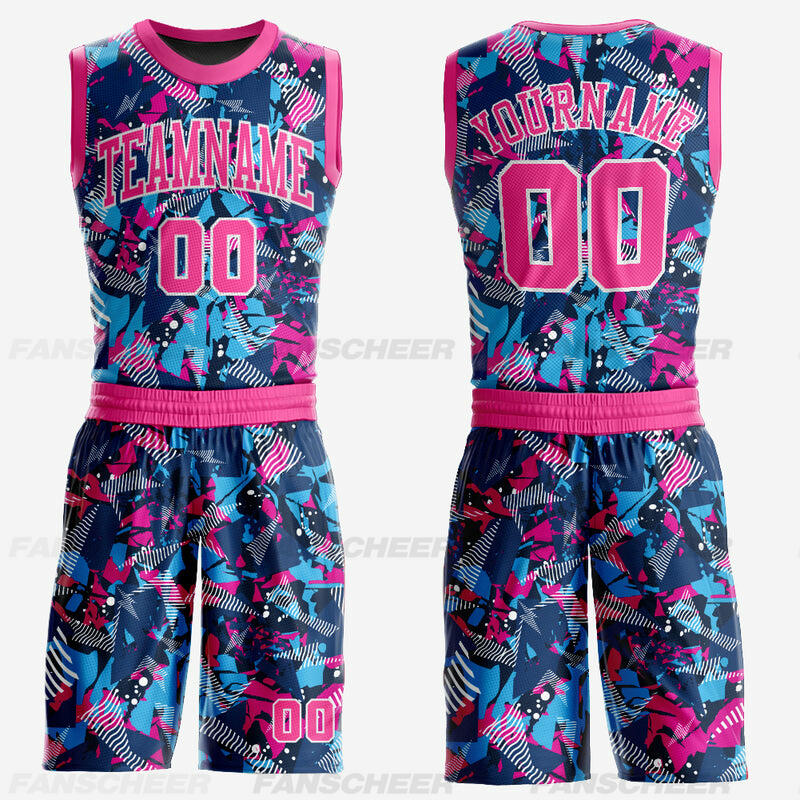 Custom Figure Pink-Light Blue Round Neck Sublimation Basketball Suit Jersey