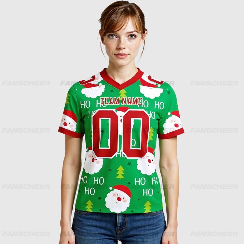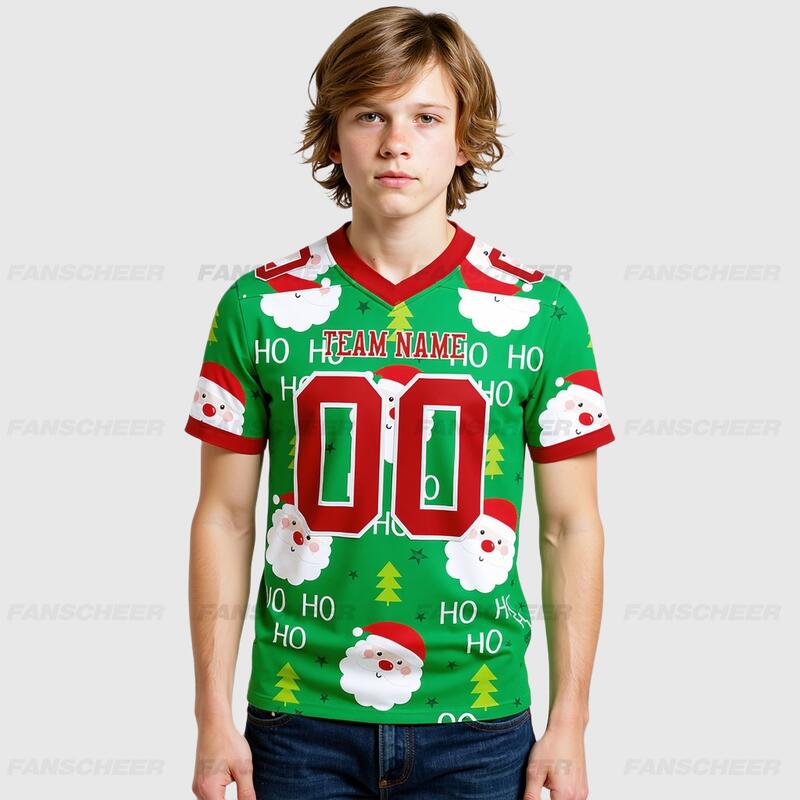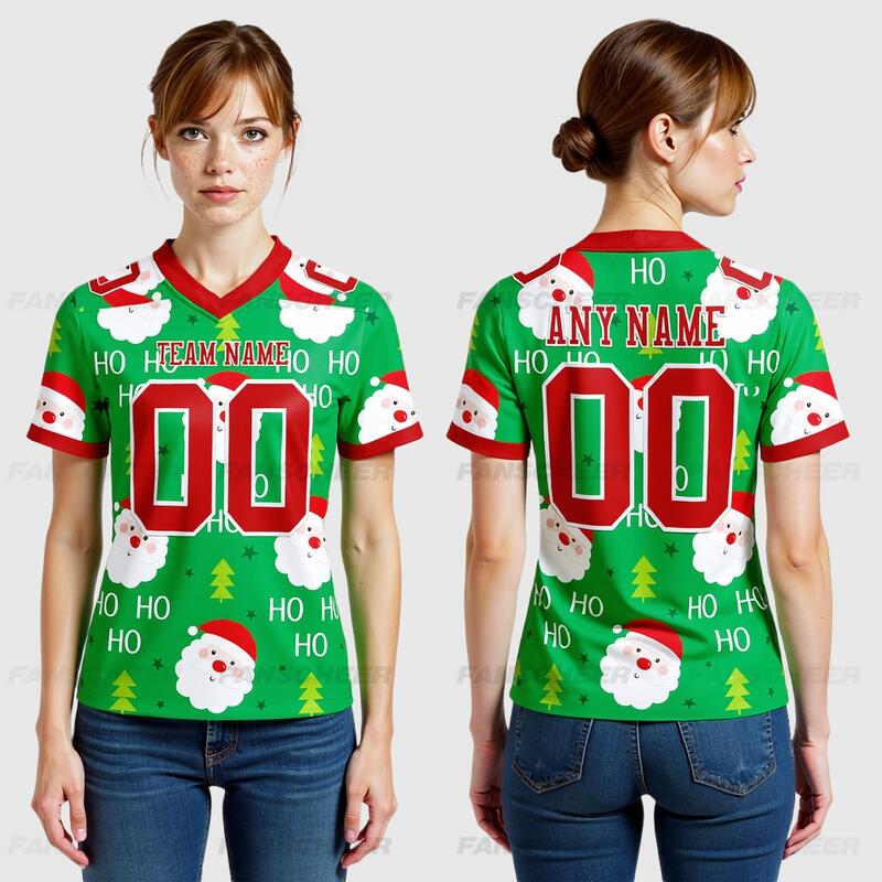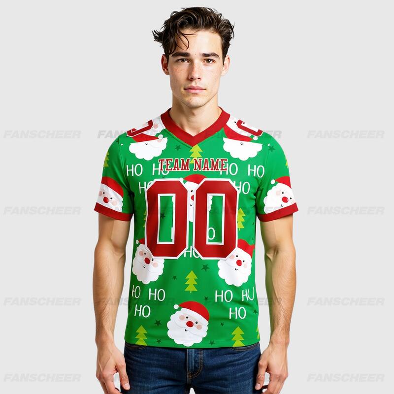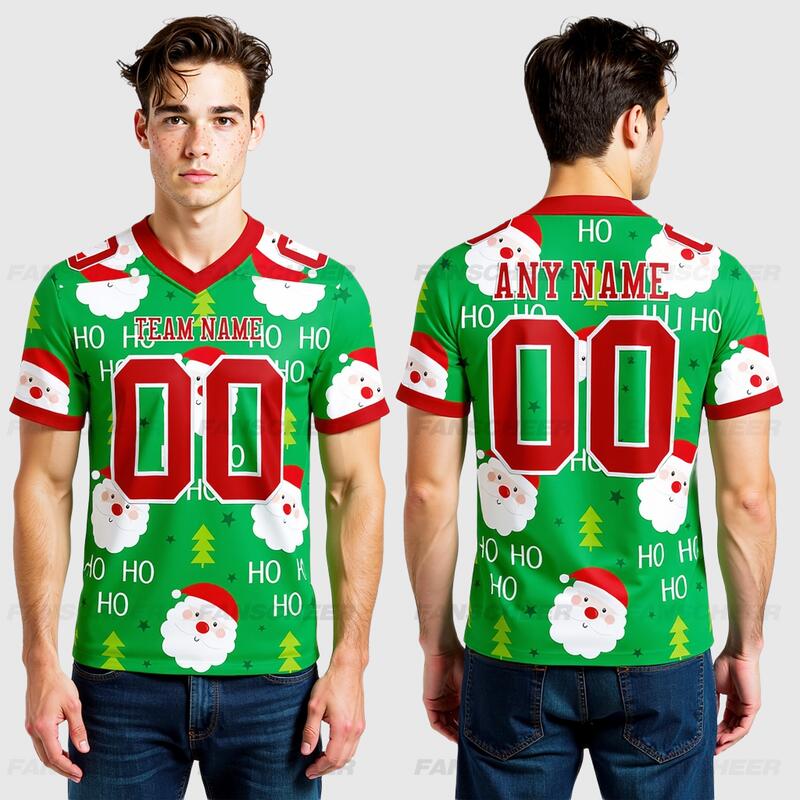 Custom Football Jersey 3D Pattern Santa Claus theme Mesh Authentic